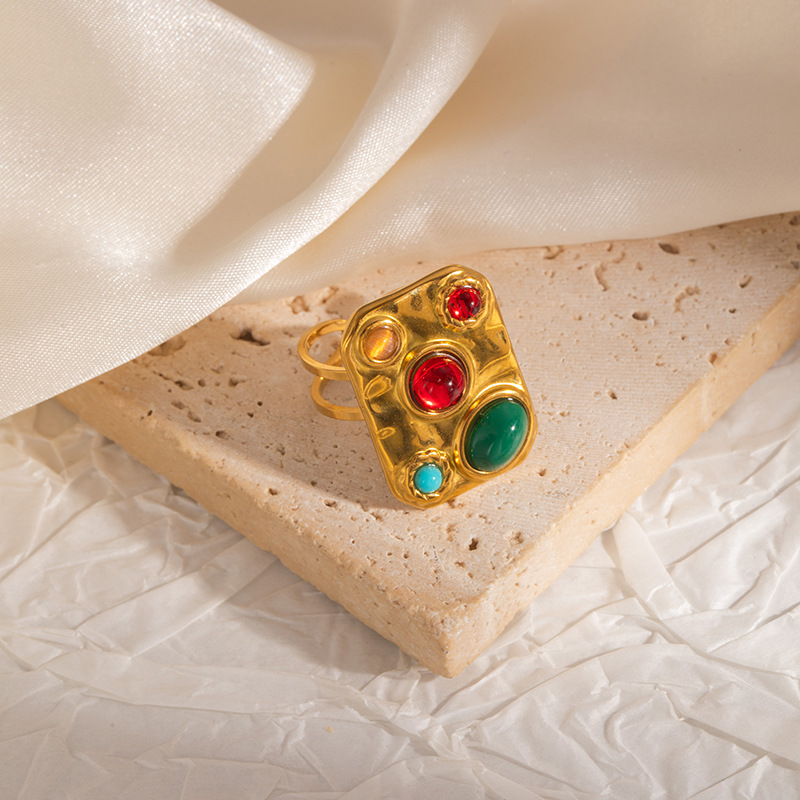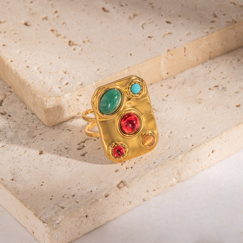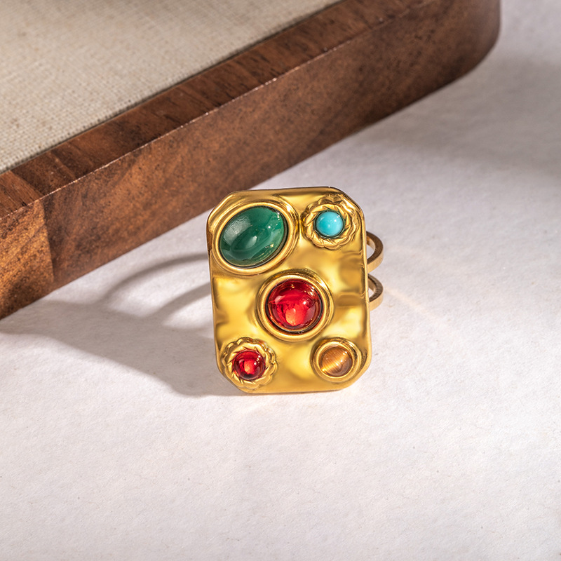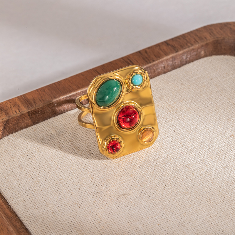 Bague en acier inoxydable, Acier inoxydable 304, avec verre, Placage, bijoux de mode & pour femme, doré, Vendu par PC