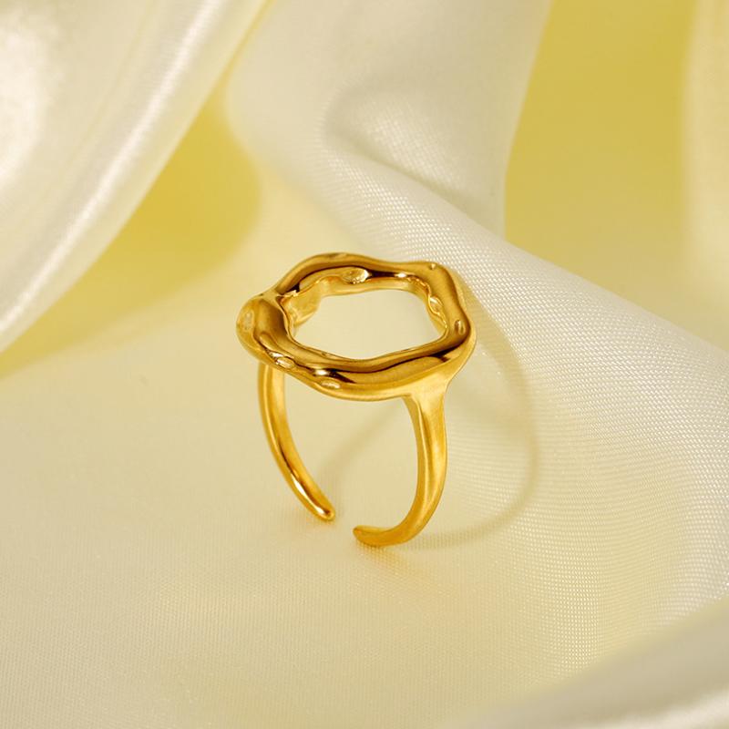 Bague en acier inoxydable, Acier inoxydable 304, Placage de couleur d'or, bijoux de mode & pour femme & creux, Vendu par PC