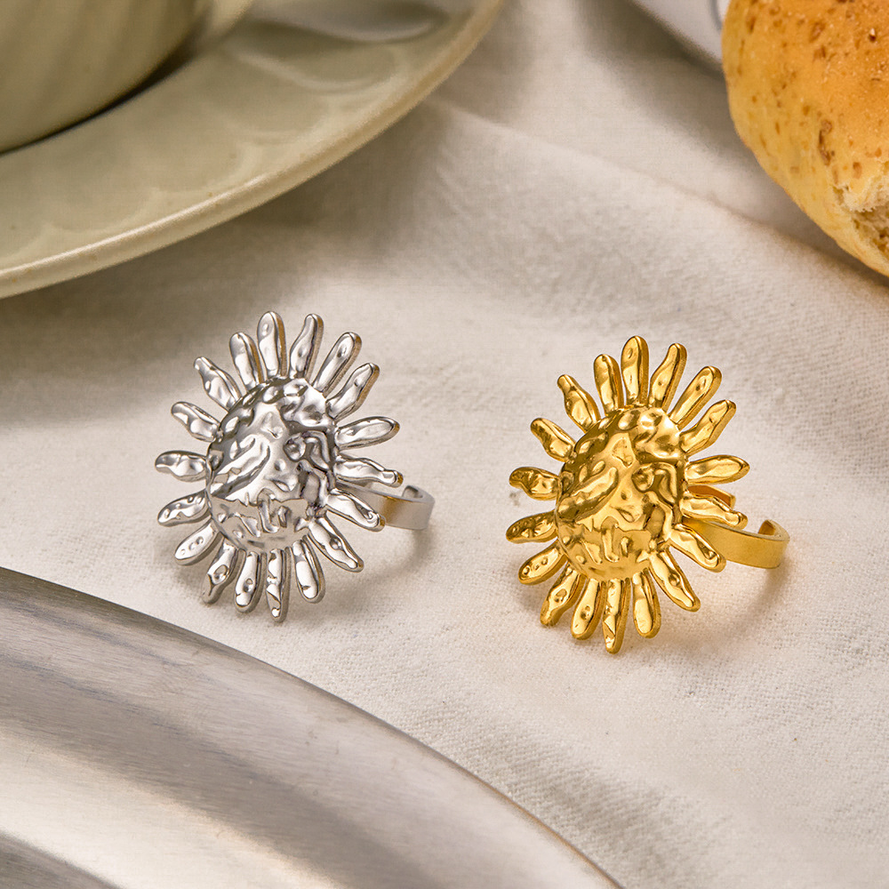 Bague en acier inoxydable, Acier inoxydable 304, soleil, Placage sous vide, bijoux de mode & pour femme, plus de couleurs à choisir, Vendu par PC