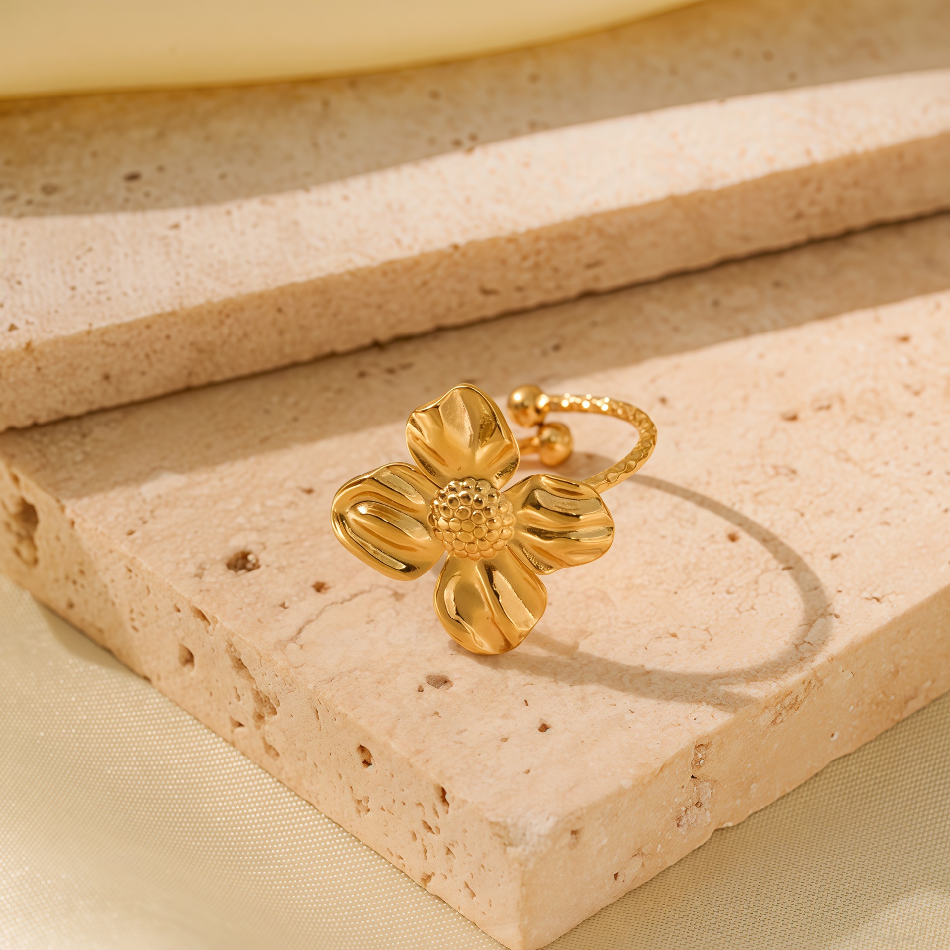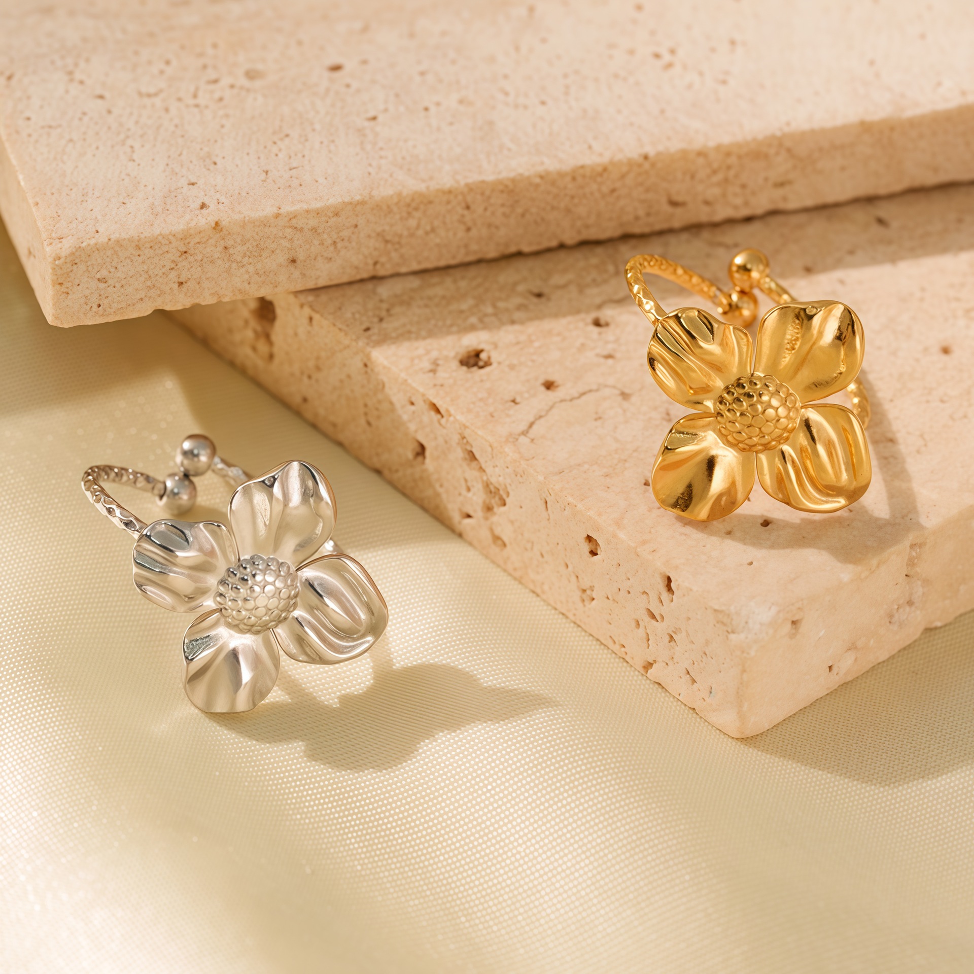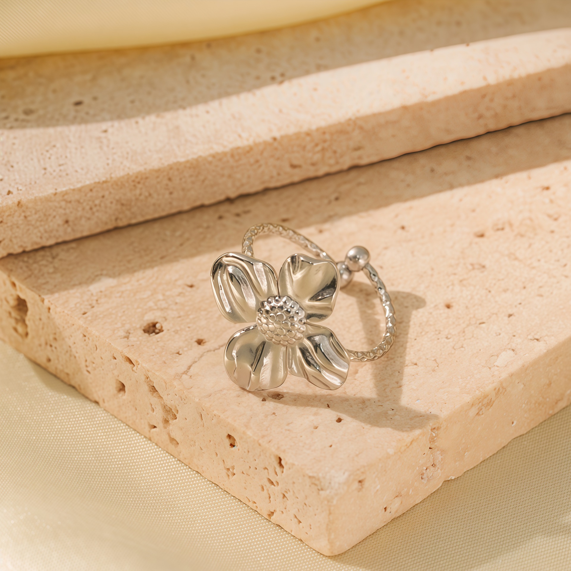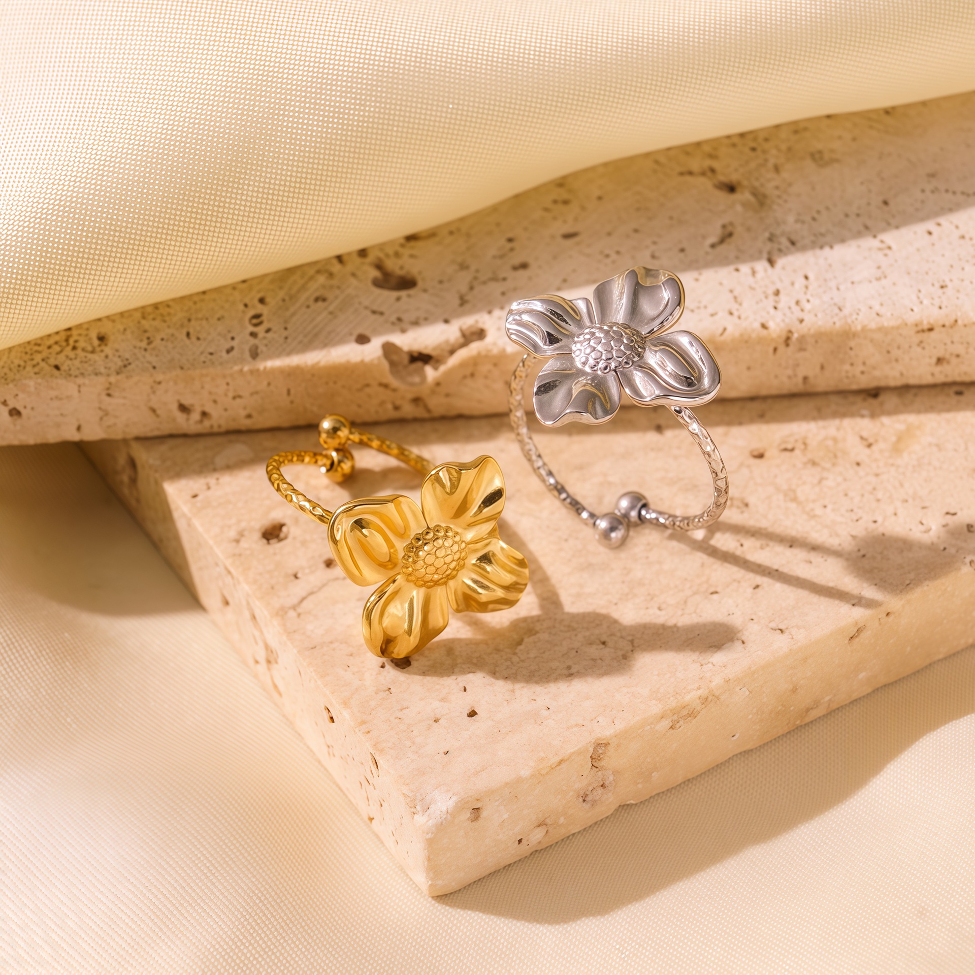 Bague en acier inoxydable, Acier inoxydable 304, fleur, Placage sous vide, bijoux de mode & pour femme, plus de couleurs à choisir, Vendu par PC