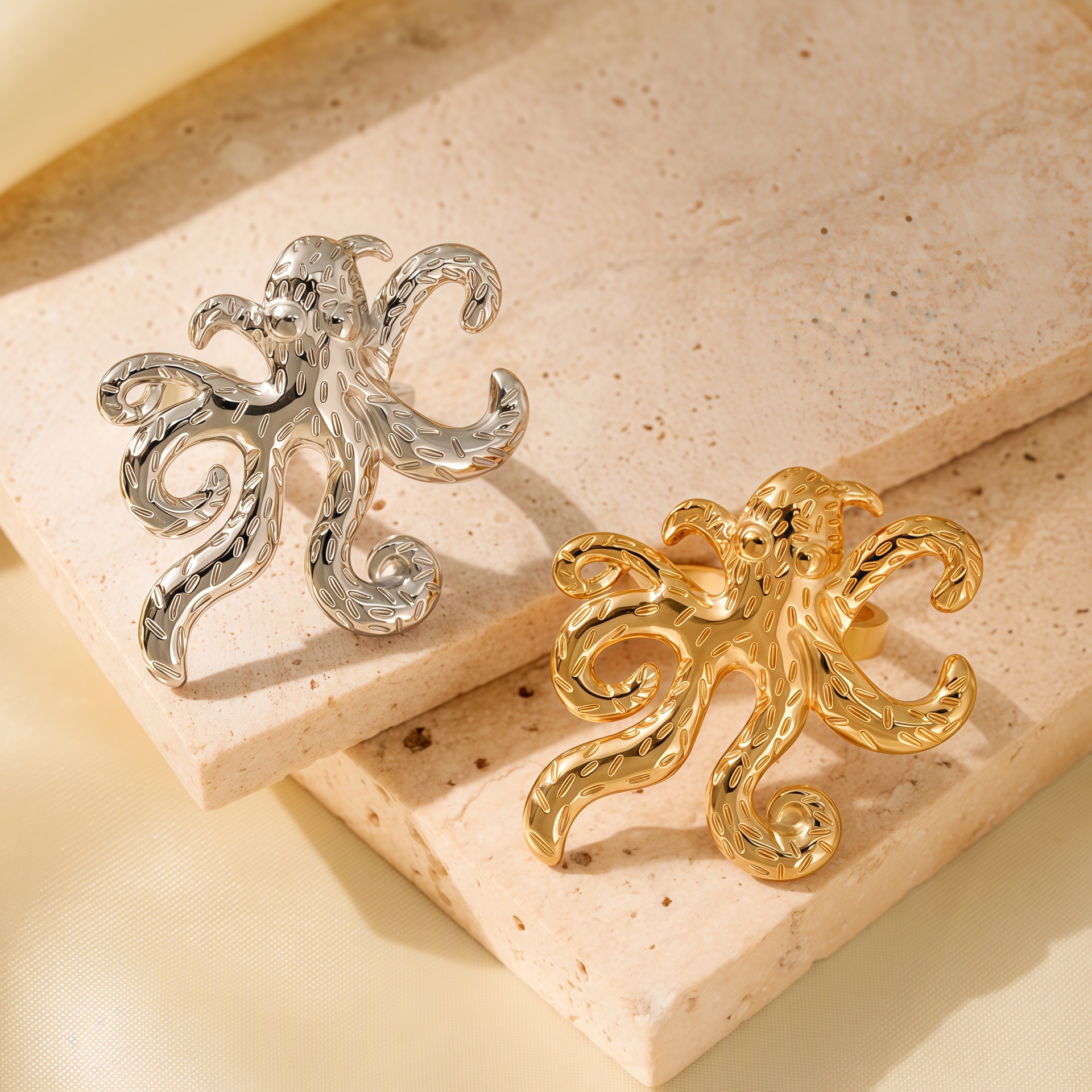 Bague en acier inoxydable, Acier inoxydable 304, Poulpe, Placage, bijoux de mode & pour femme & creux, plus de couleurs à choisir, Vendu par PC