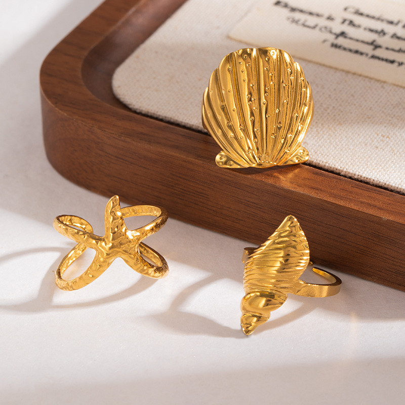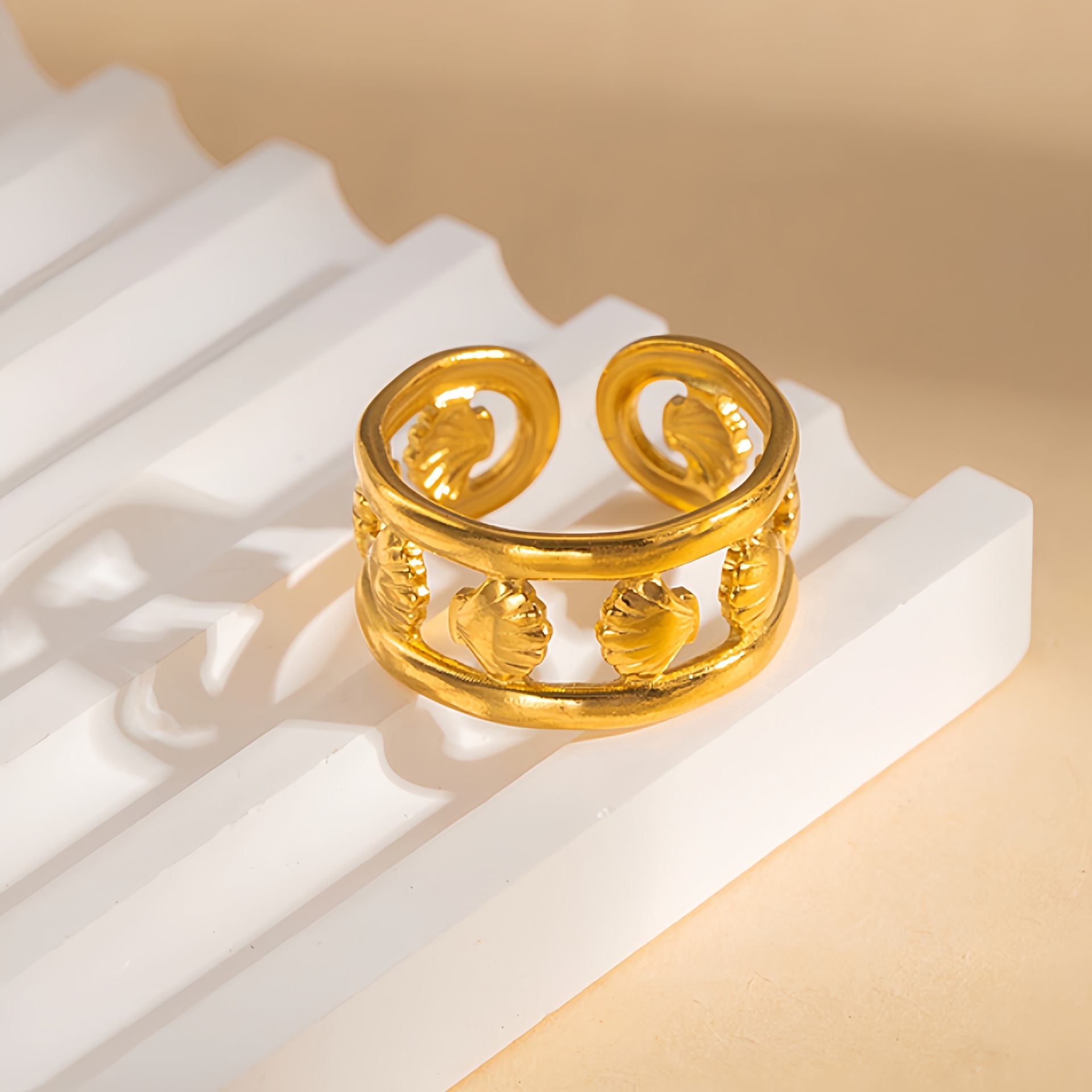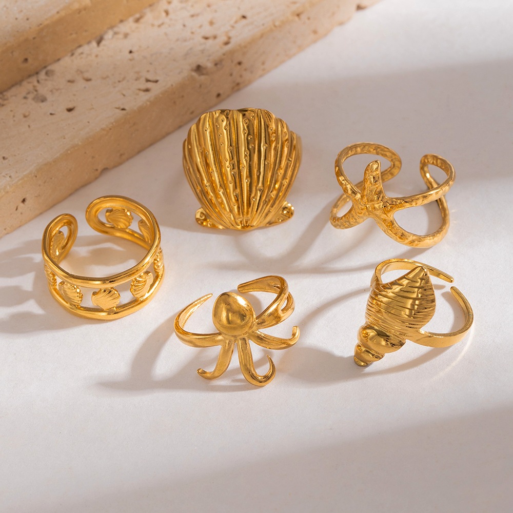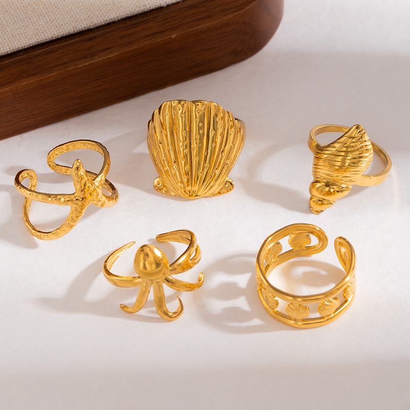 Bague en acier inoxydable, Acier inoxydable 304, Placage, styles différents pour le choix & pour femme & creux, doré, Vendu par PC