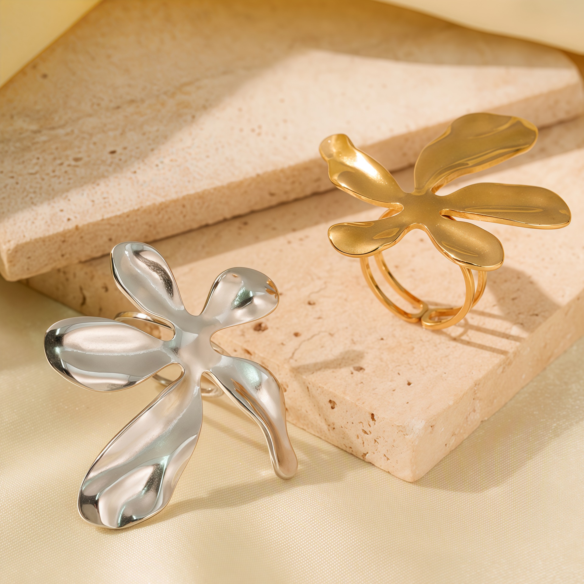 Bague en acier inoxydable, Acier inoxydable 304, fleur, Placage, bijoux de mode & pour femme & creux, plus de couleurs à choisir, Vendu par PC