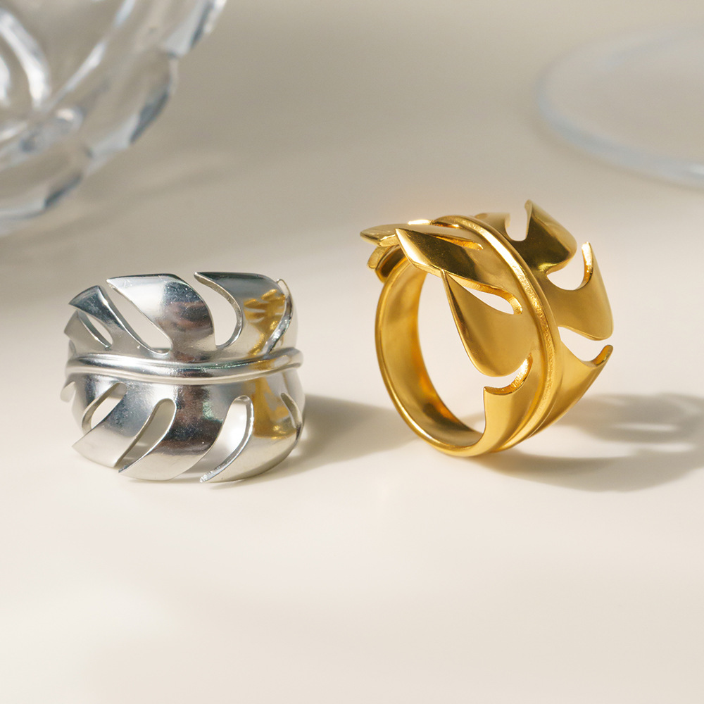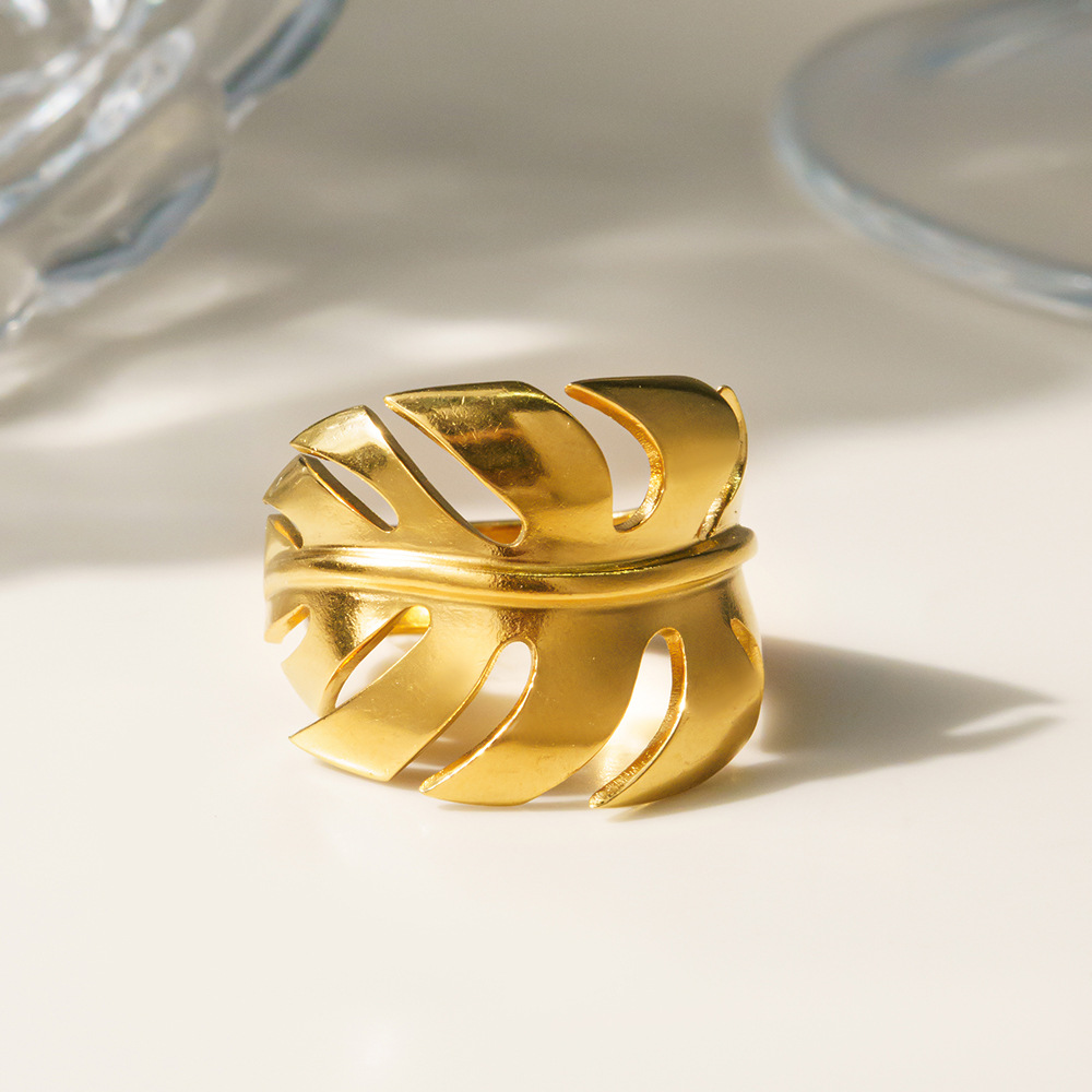 Bague en acier inoxydable, Acier inoxydable 304, feuille, Placage sous vide, bijoux de mode & pour femme, Vendu par PC