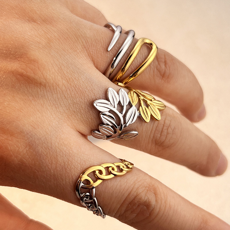 Bague en acier inoxydable, Acier inoxydable 304, Placage, styles différents pour le choix & pour femme & deux tons & creux, Vendu par PC