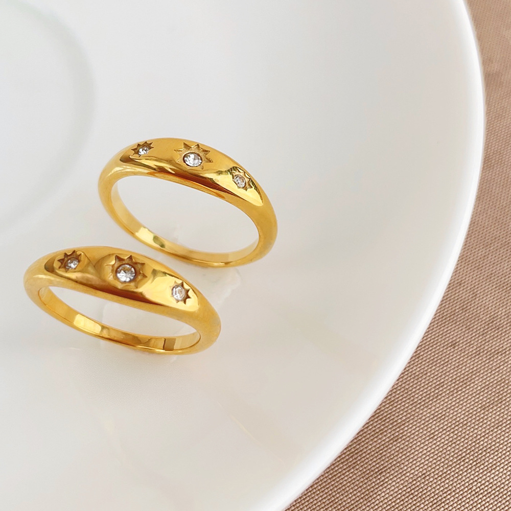Bague en acier inoxydable , pour femme & avec strass, doré, 4mm îte, Vendu par boîte