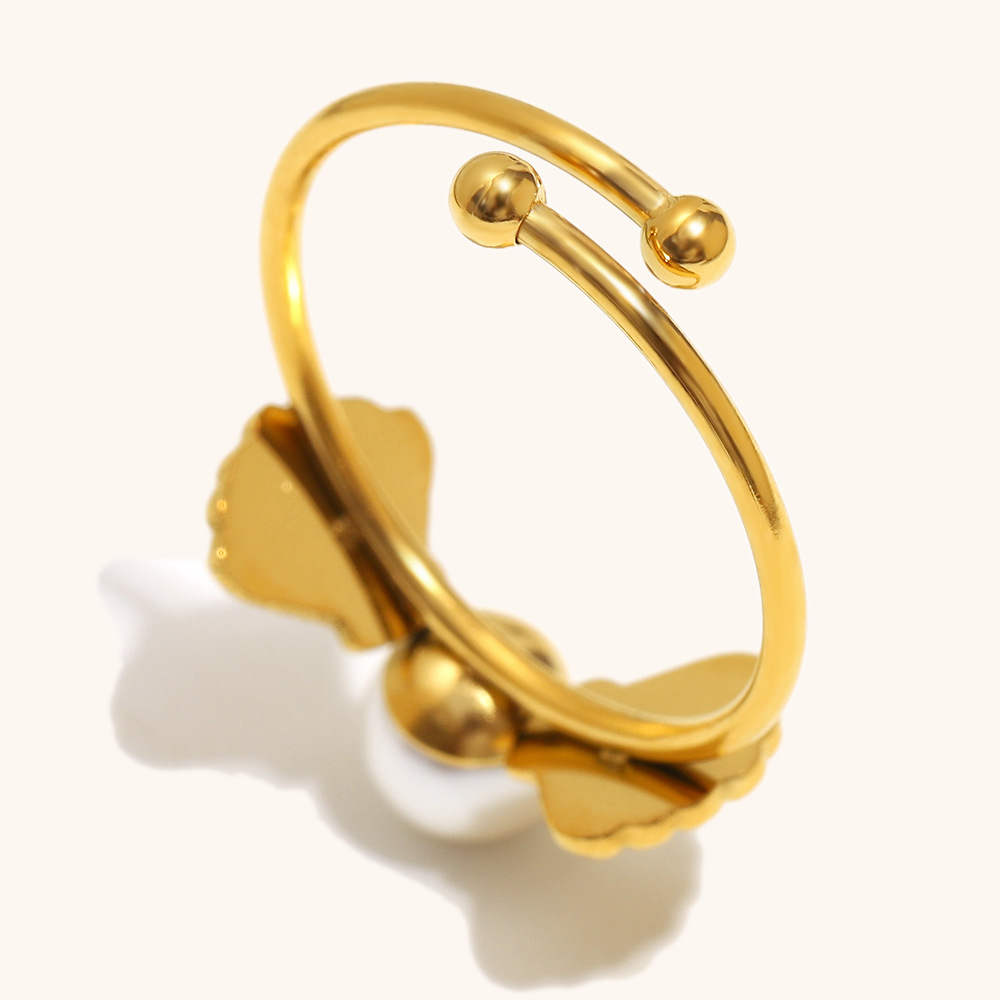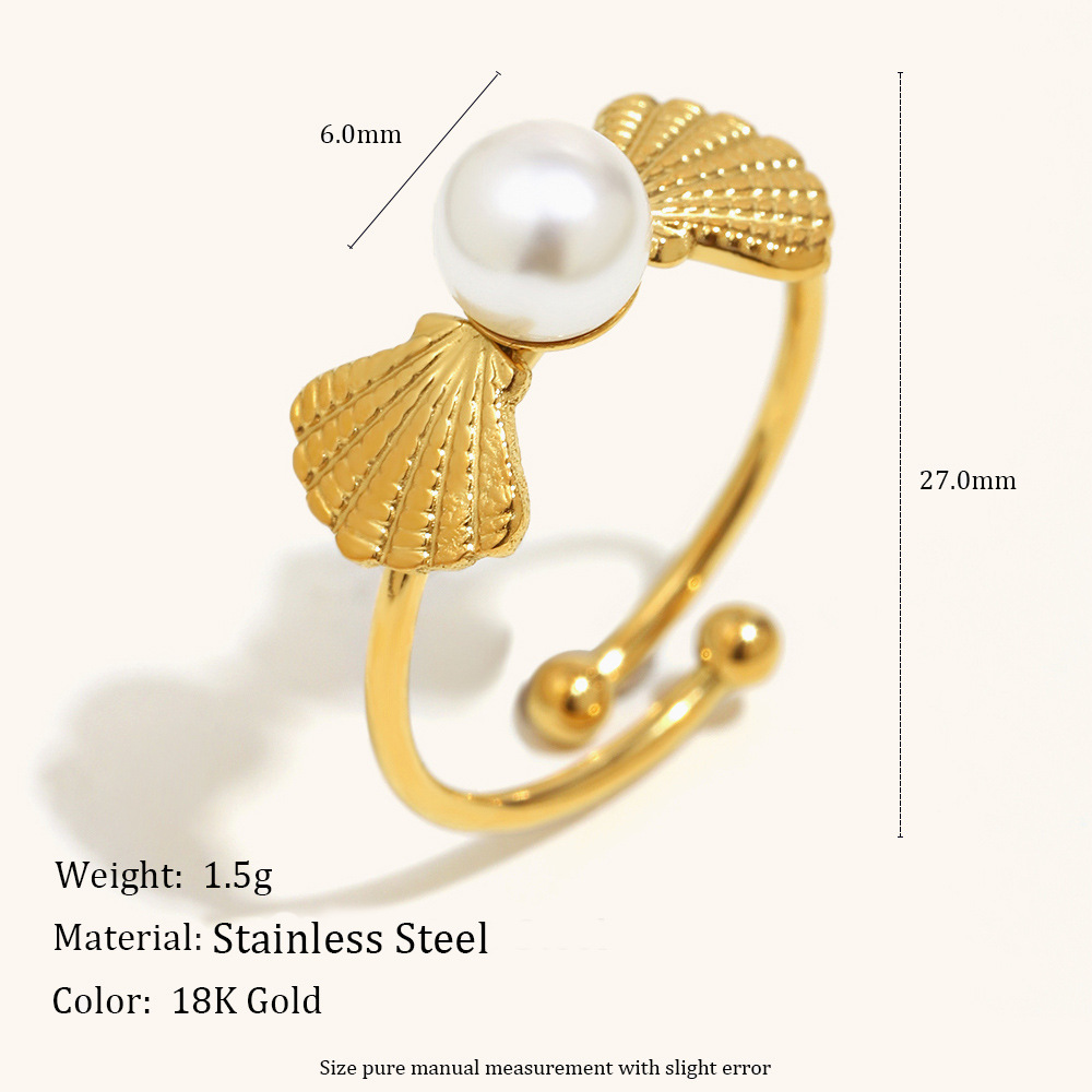 Bague en acier inoxydable, Acier inoxydable 304, avec Shell Pearl, Plaqué or 18K, bijoux de mode & pour femme, Vendu par PC