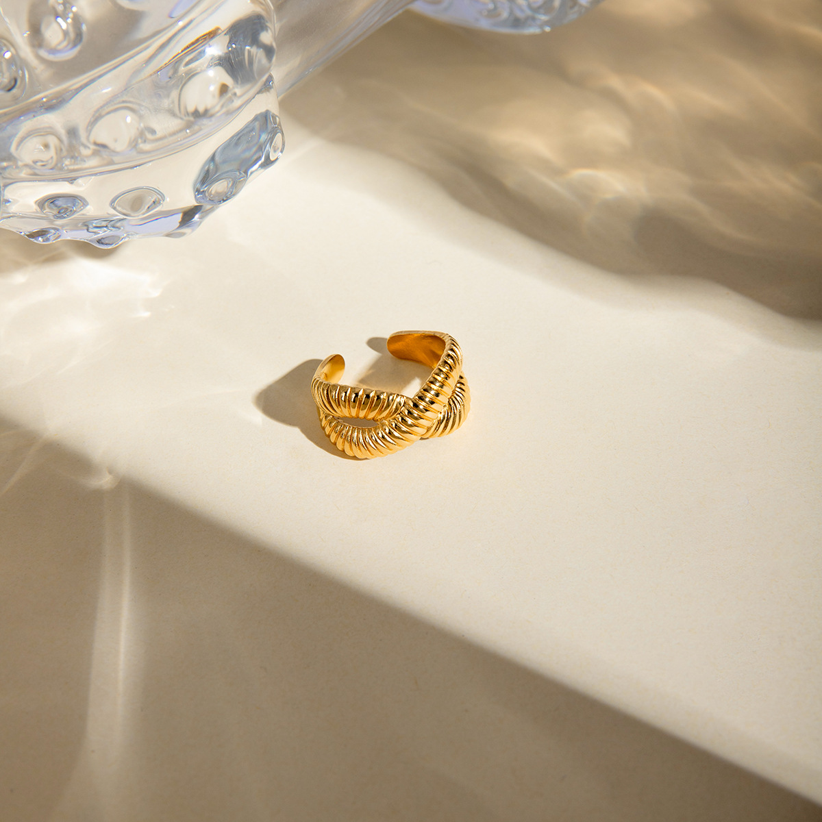 Bague en acier inoxydable, Acier inoxydable 304, Placage, styles différents pour le choix & pour femme & creux, doré, Vendu par PC