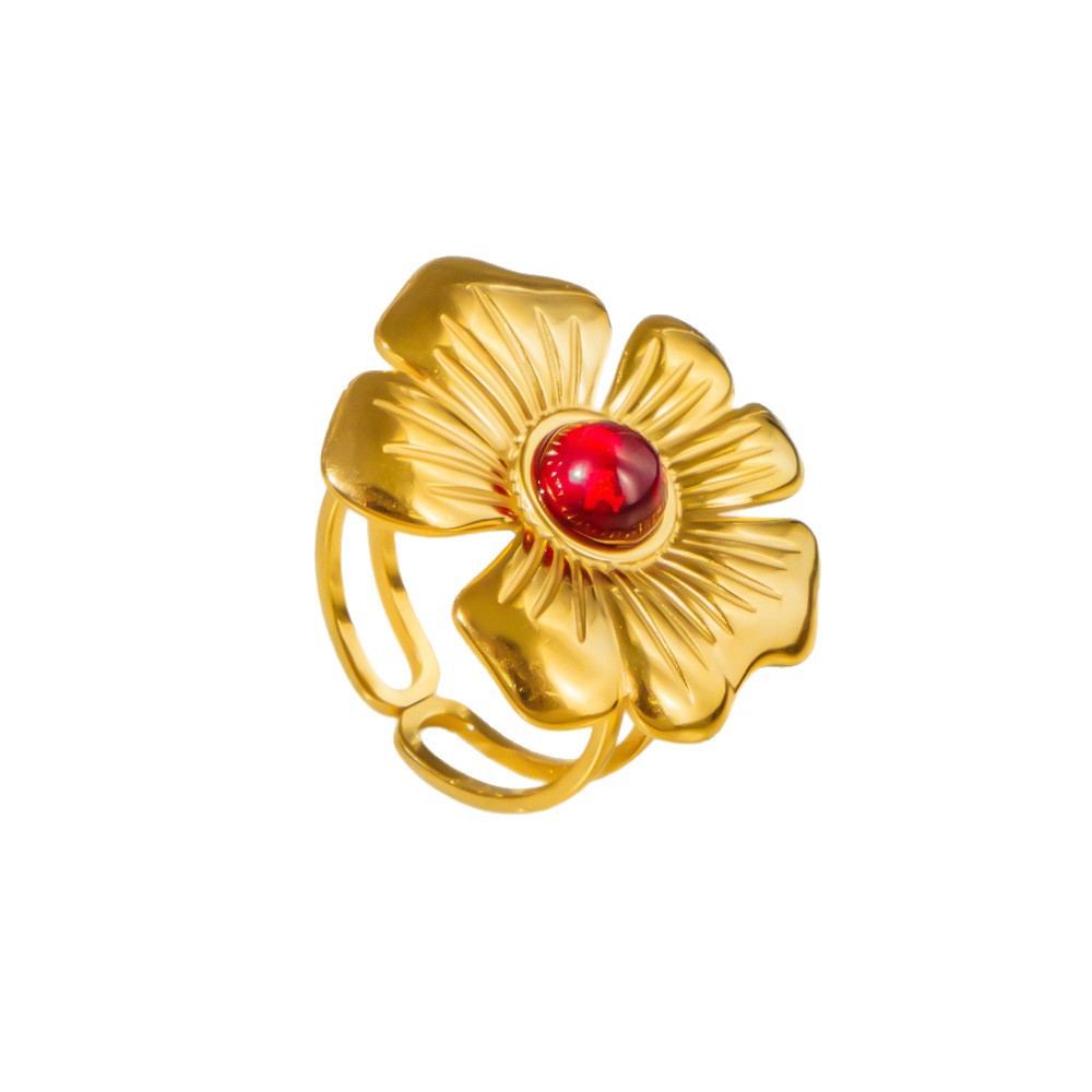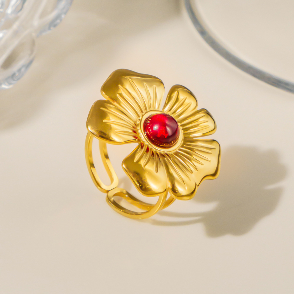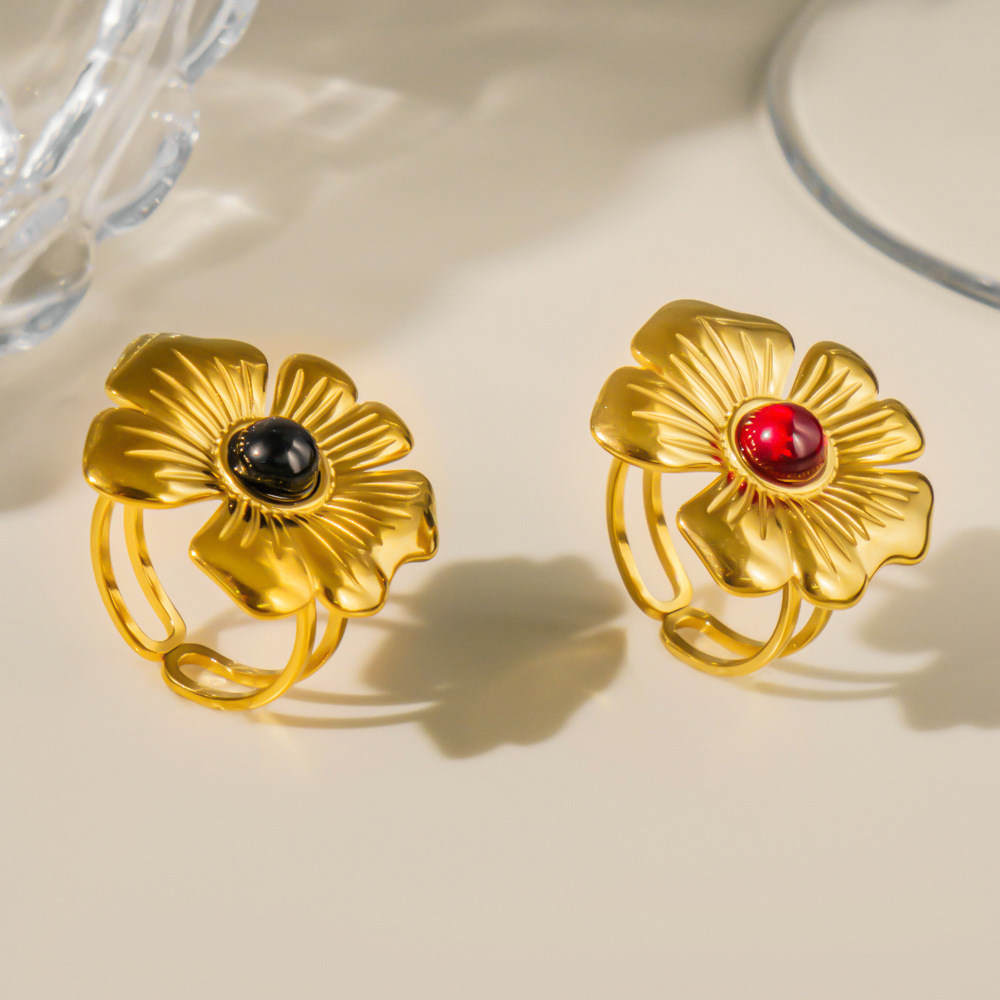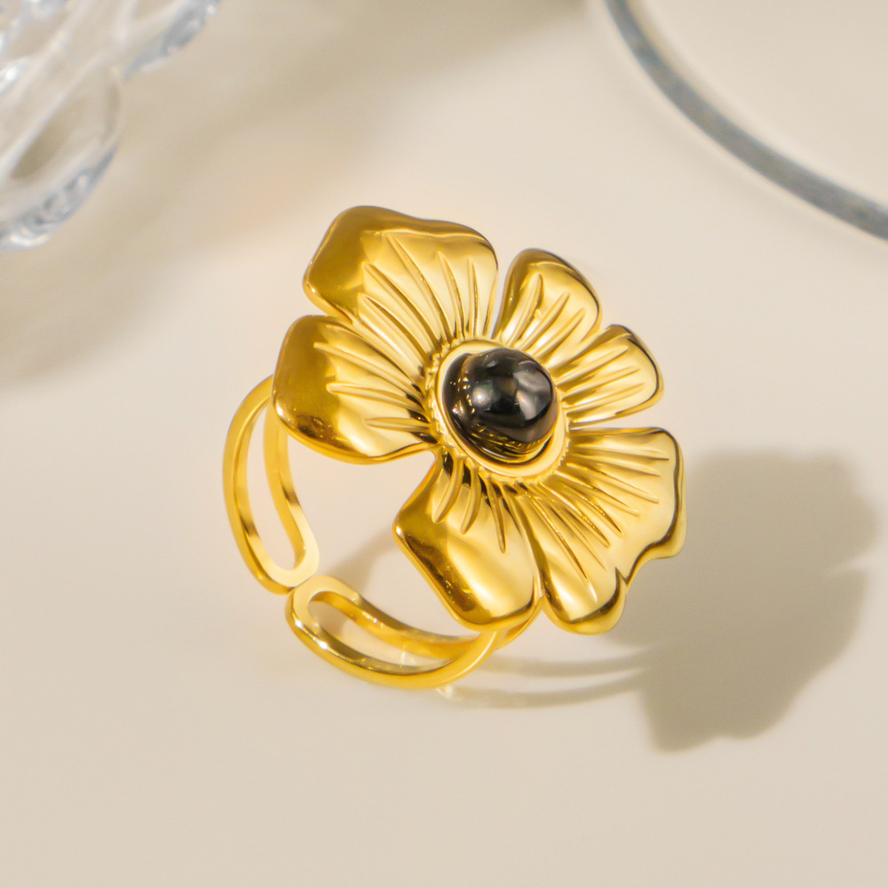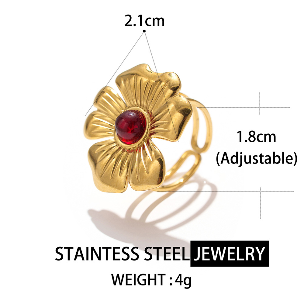 Bague en acier inoxydable, Acier inoxydable 304, avec plastique, fleur, Plaqué or 18K, bijoux de mode & pour femme & creux, Vendu par PC