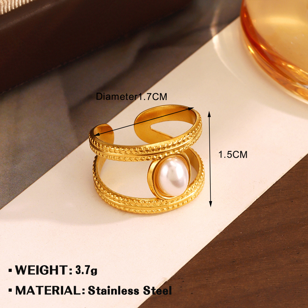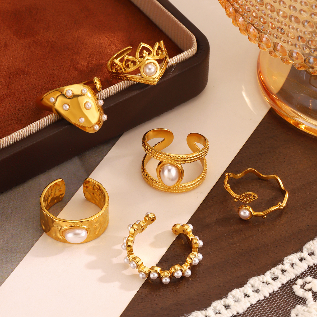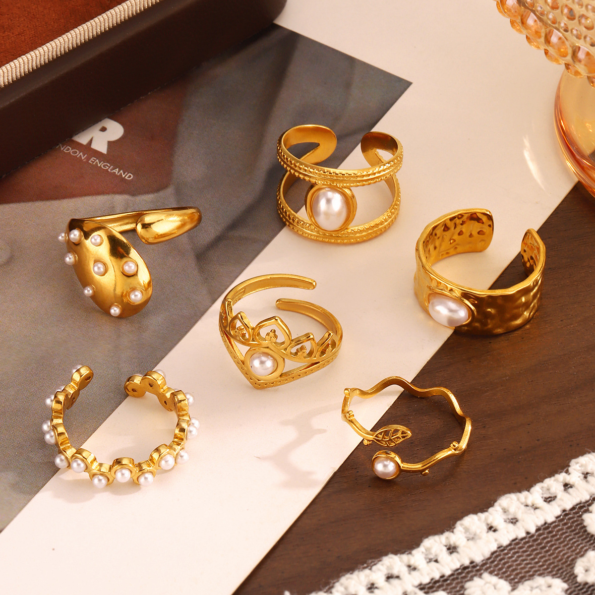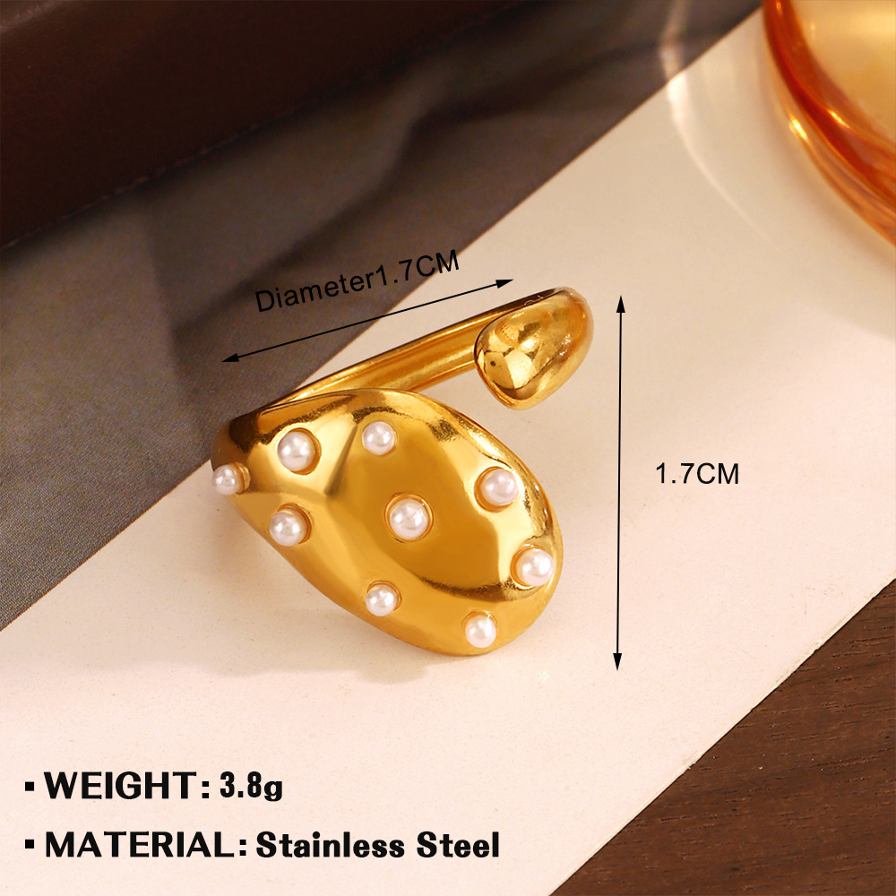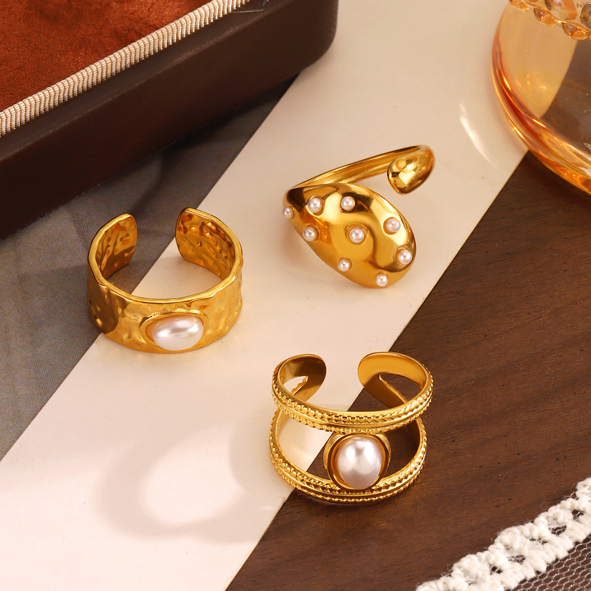 Bague en acier inoxydable, Acier inoxydable 304, avec perle de plastique, Placage, bijoux de mode & styles différents pour le choix & pour femme, doré, Vendu par PC