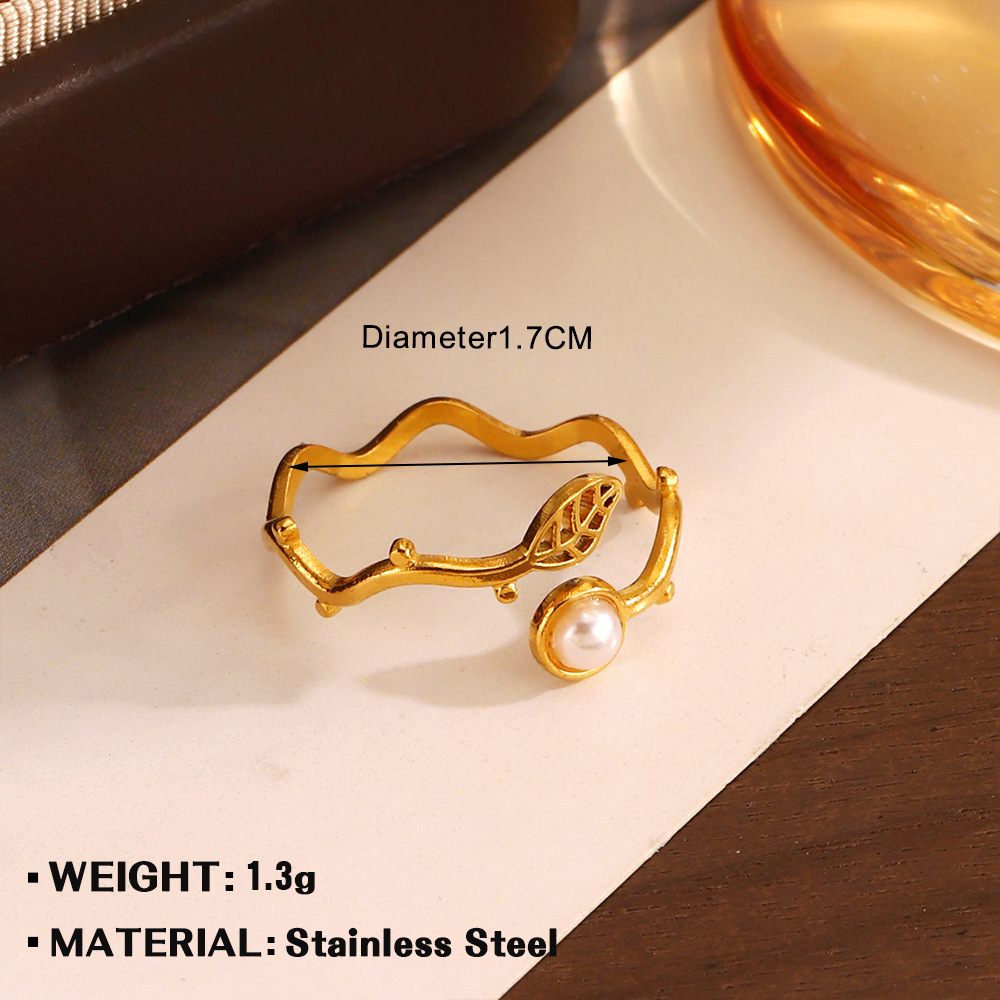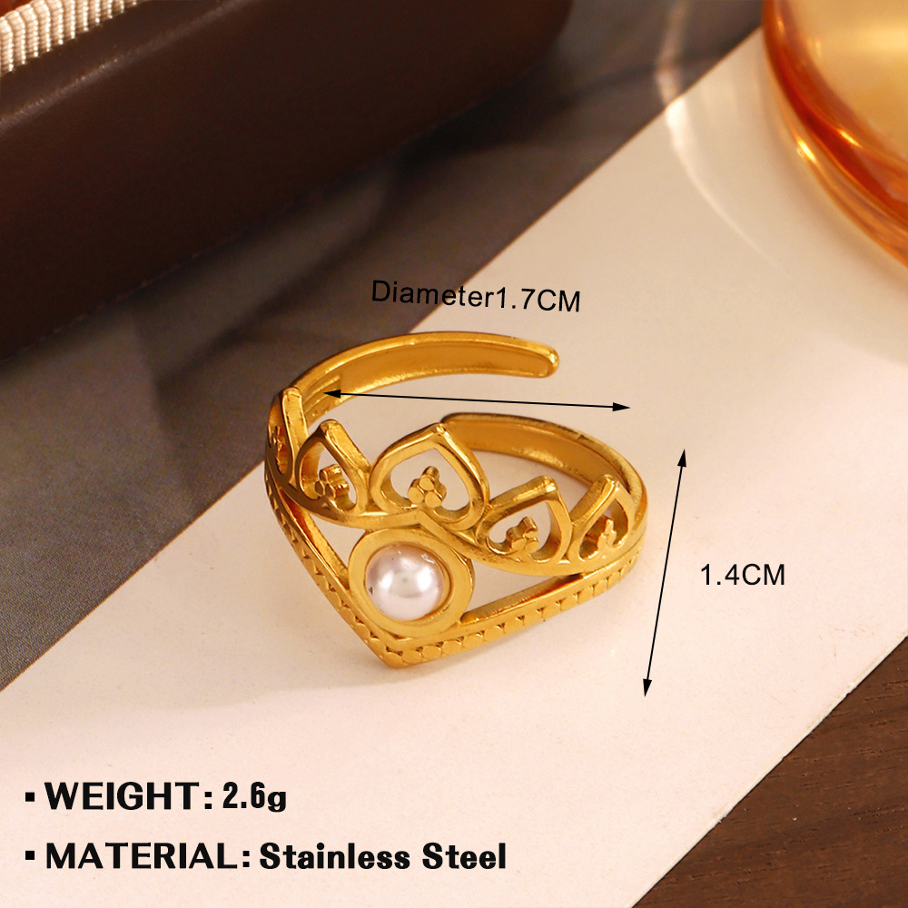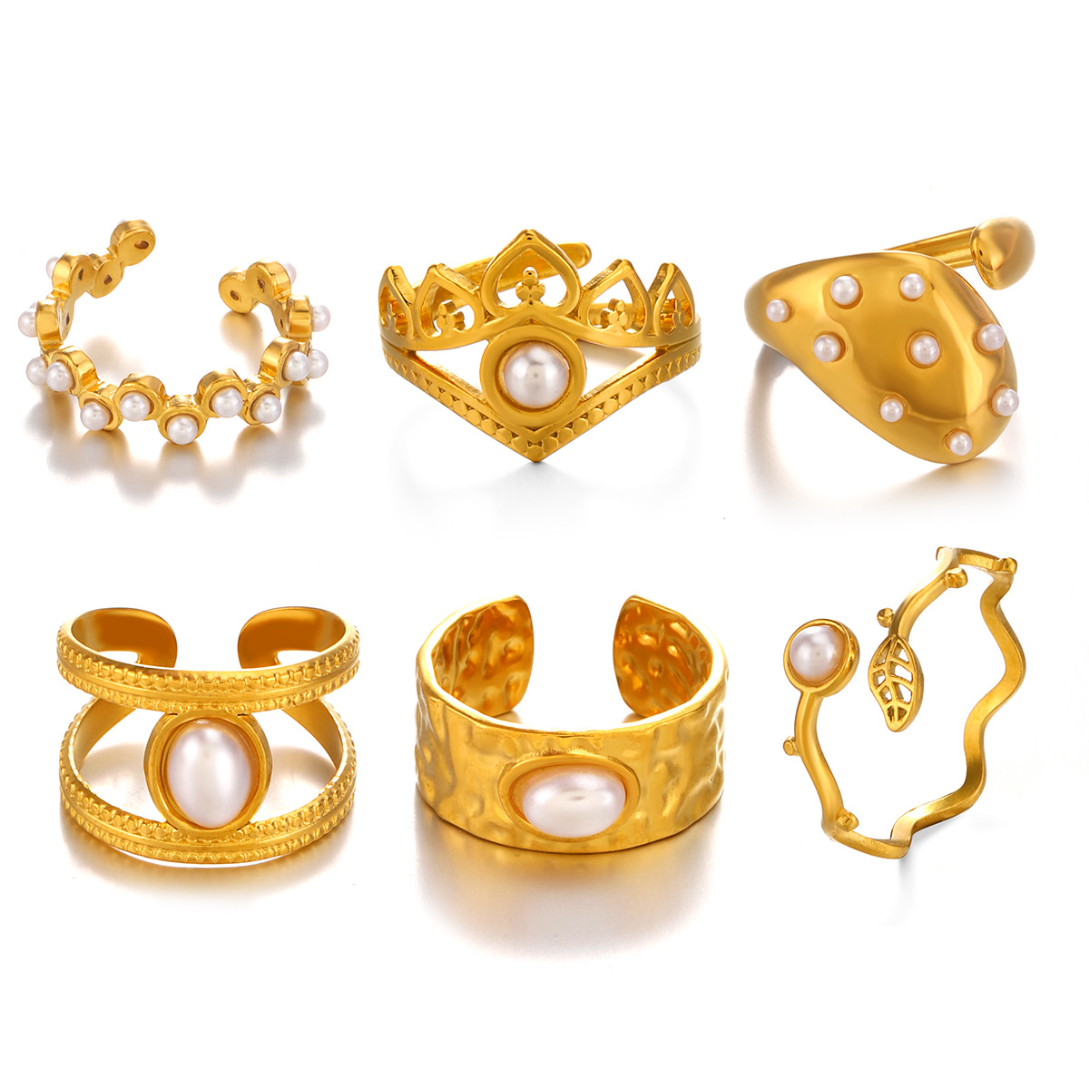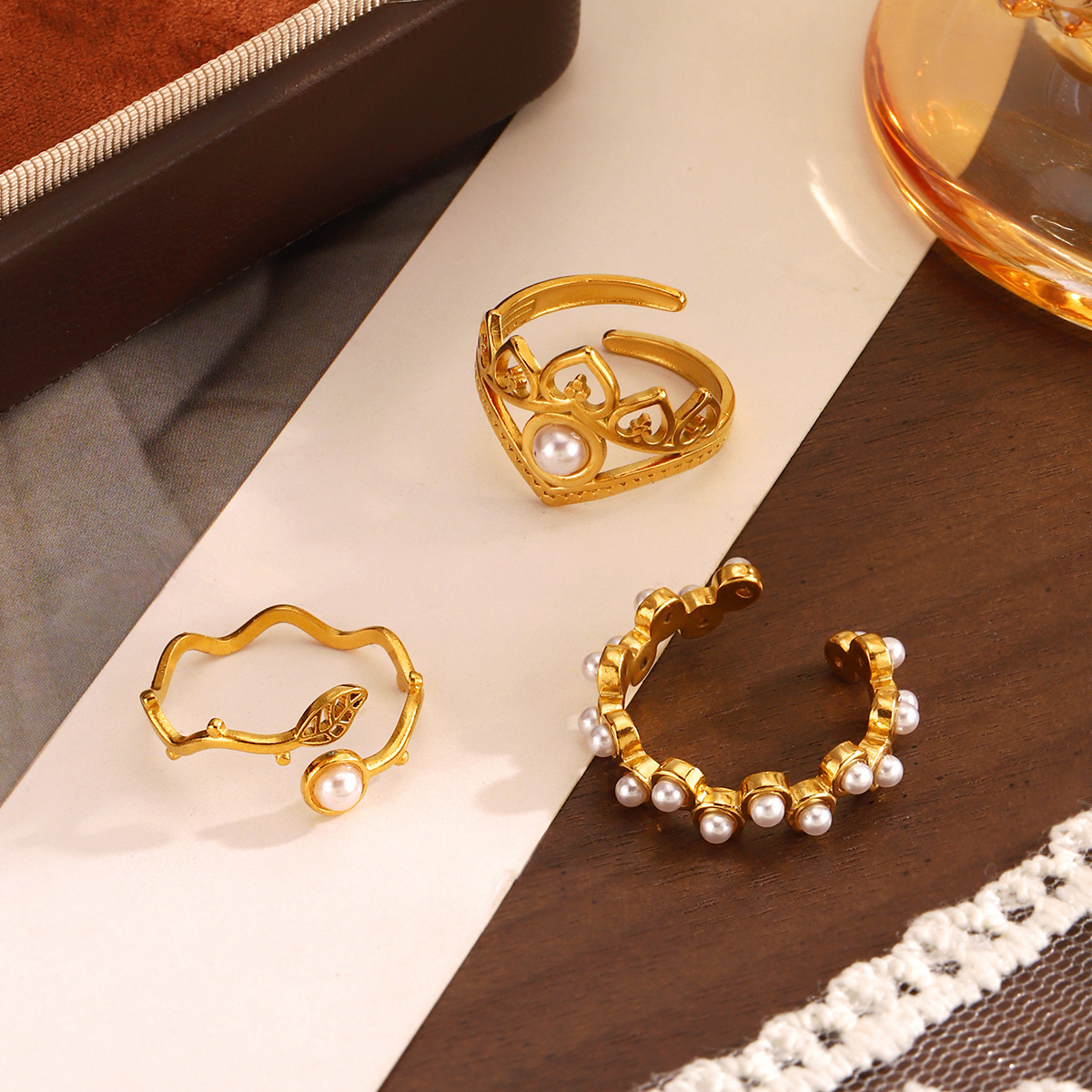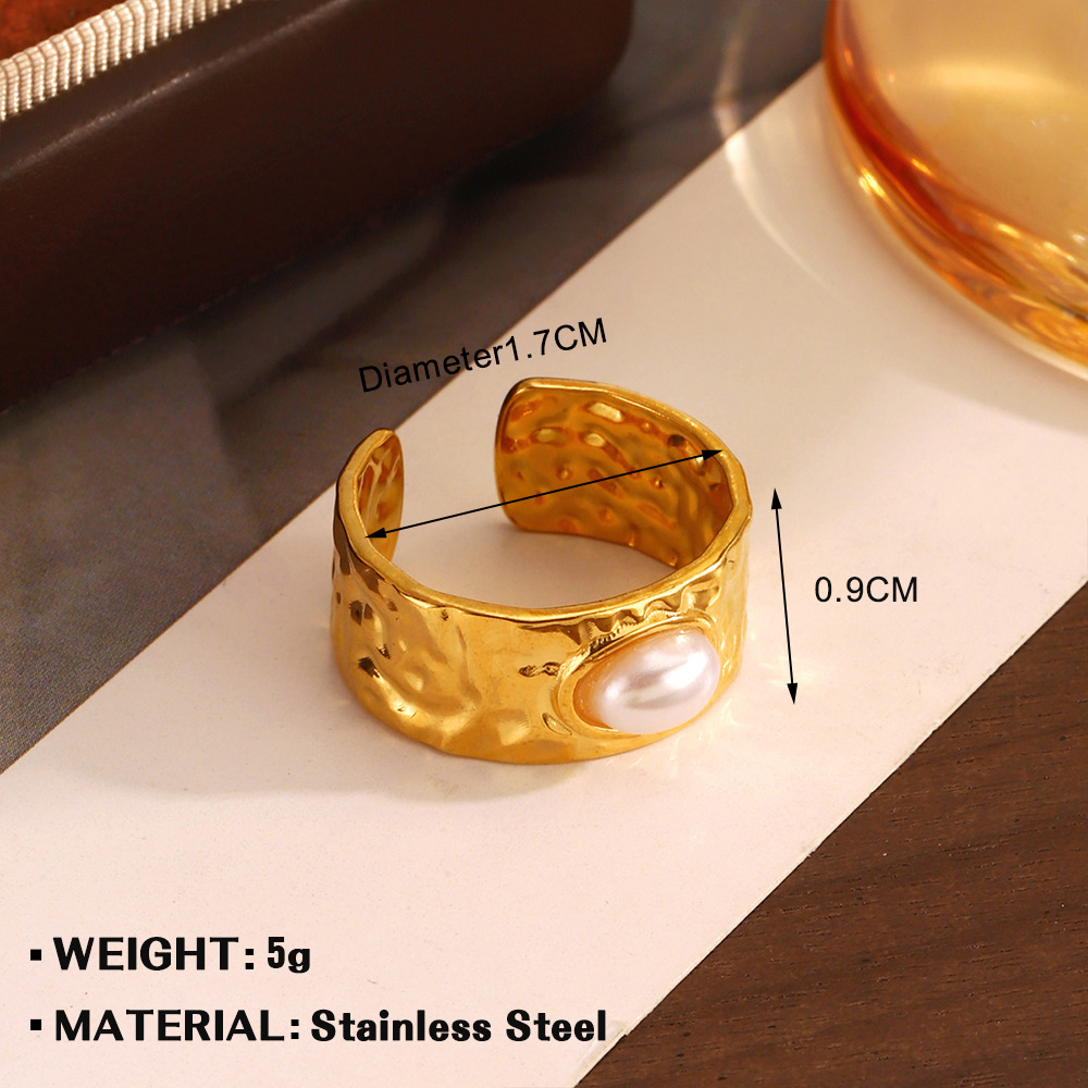 Bague en acier inoxydable, Acier inoxydable 304, avec perle de plastique, Placage, bijoux de mode & styles différents pour le choix & pour femme, doré, Vendu par PC