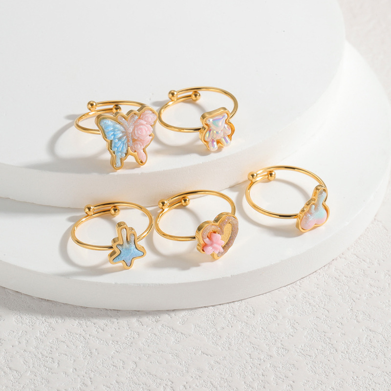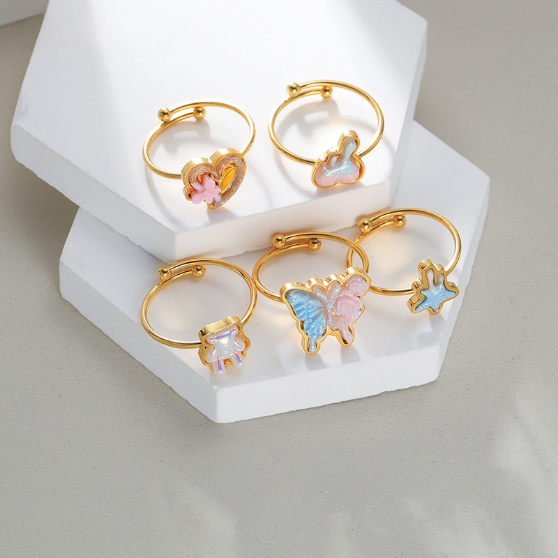 Bague en acier inoxydable, Acier inoxydable 304, avec Acrylique, Placage, bijoux de mode & styles différents pour le choix & pour femme, doré, Vendu par PC