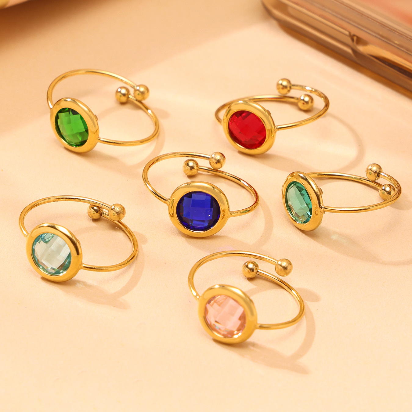 Txa275-gold red glass stone ring-round