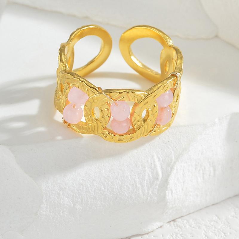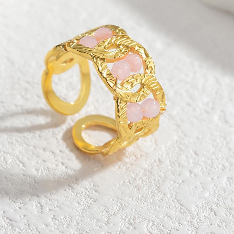 Bague en acier inoxydable, Acier inoxydable 304, avec résine, Placage, bijoux de mode & pour femme & creux, doré, Vendu par PC