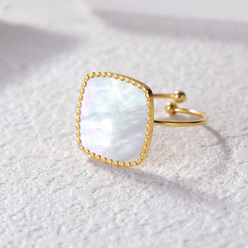Bague en acier inoxydable, Acier inoxydable 304, avec Huître perlière, cadre, Placage, bijoux de mode & pour femme, doré, Vendu par PC