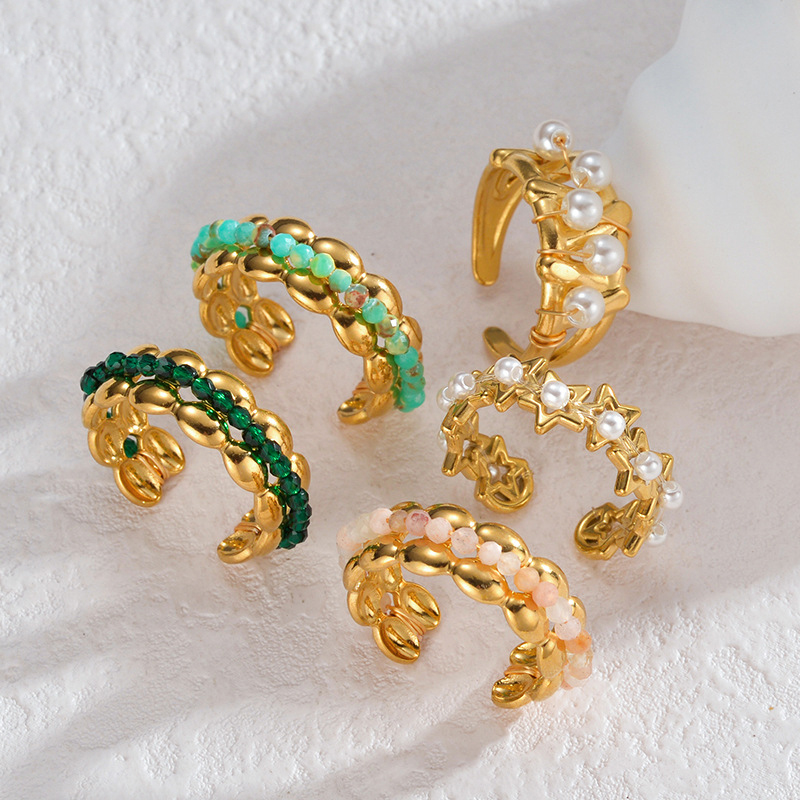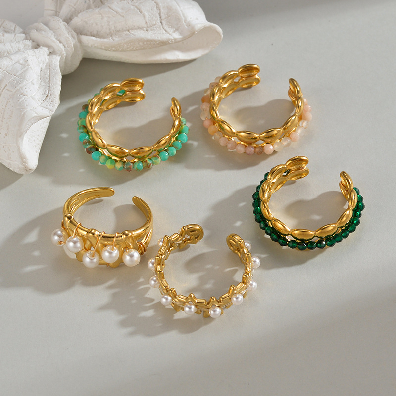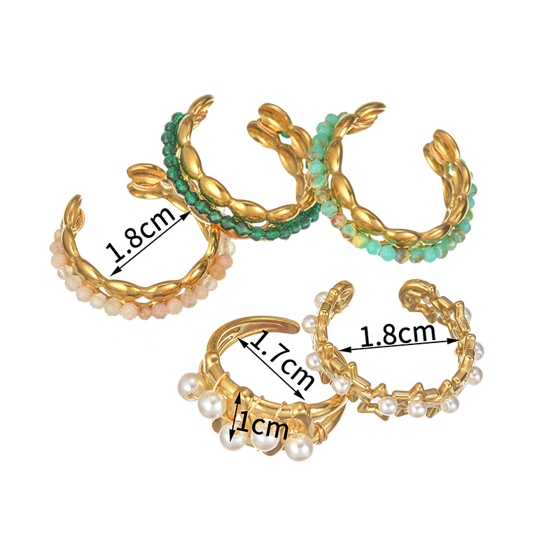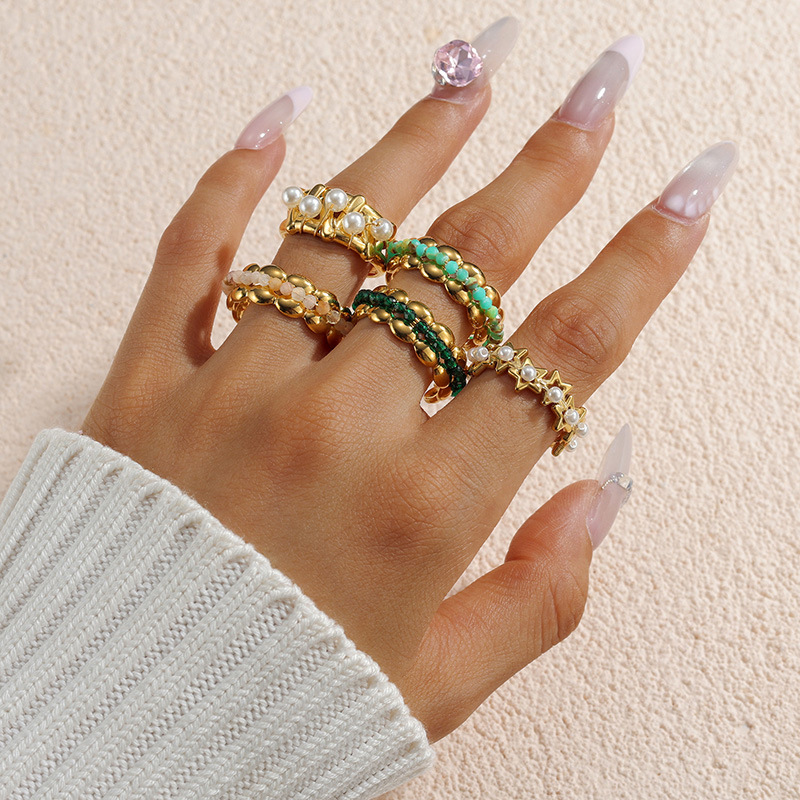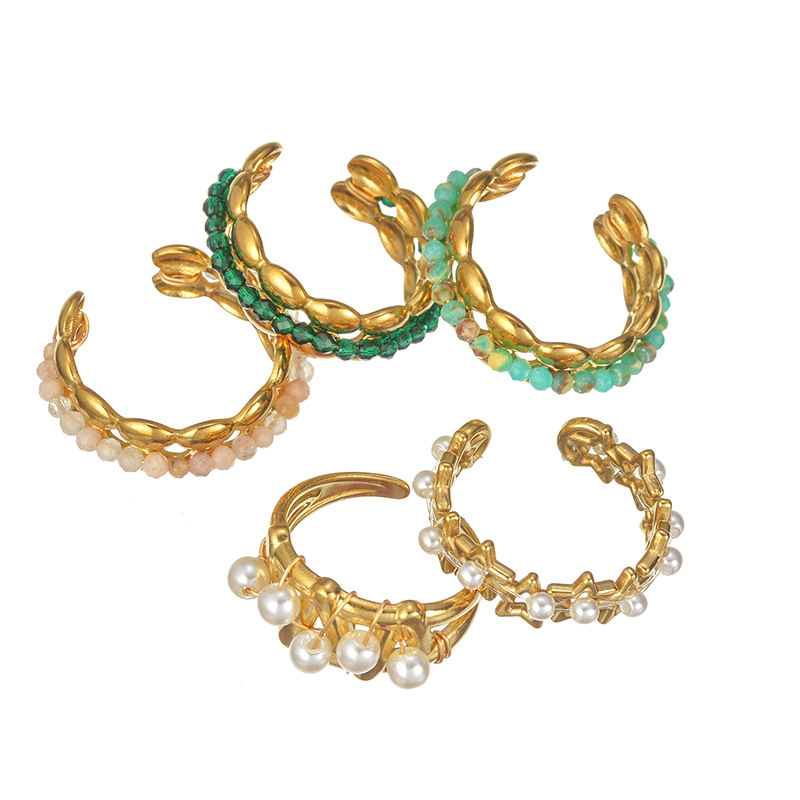 Bague en acier inoxydable, Acier inoxydable 304, avec perle de plastique, Placage, bijoux de mode & styles différents pour le choix & pour femme, doré, Vendu par PC