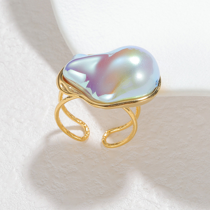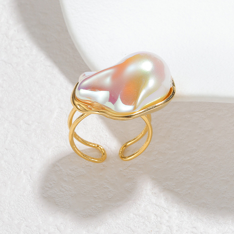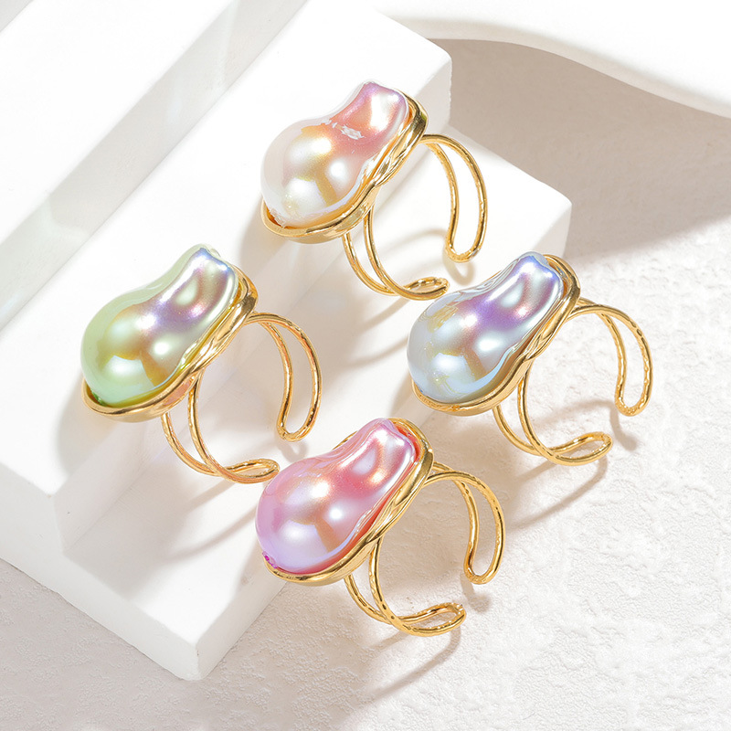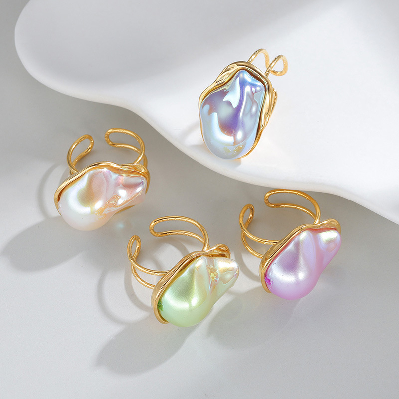 Bague en acier inoxydable, Acier inoxydable 304, avec perle de plastique, Plaqué or 18K, bijoux de mode & pour femme & creux, plus de couleurs à choisir, Vendu par PC