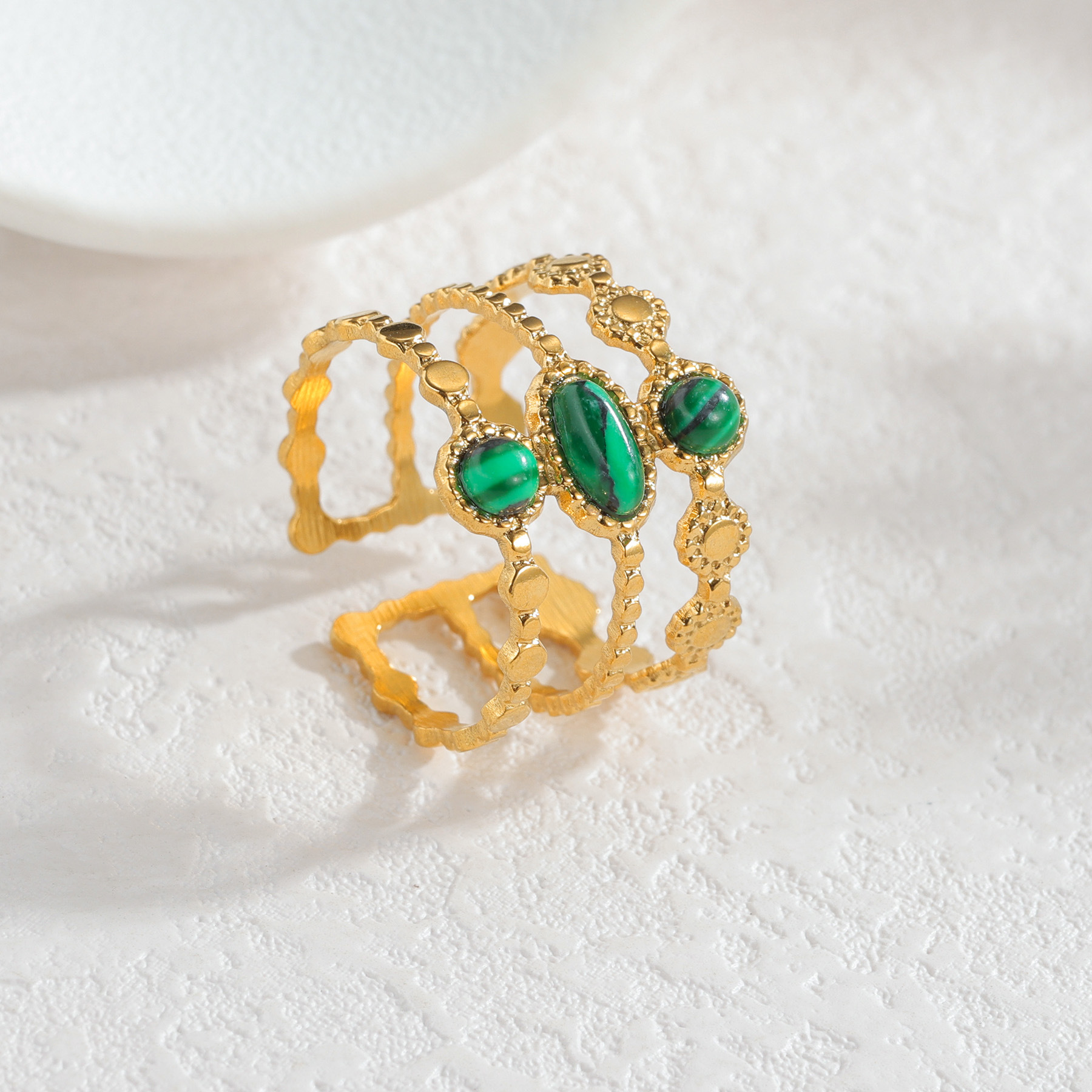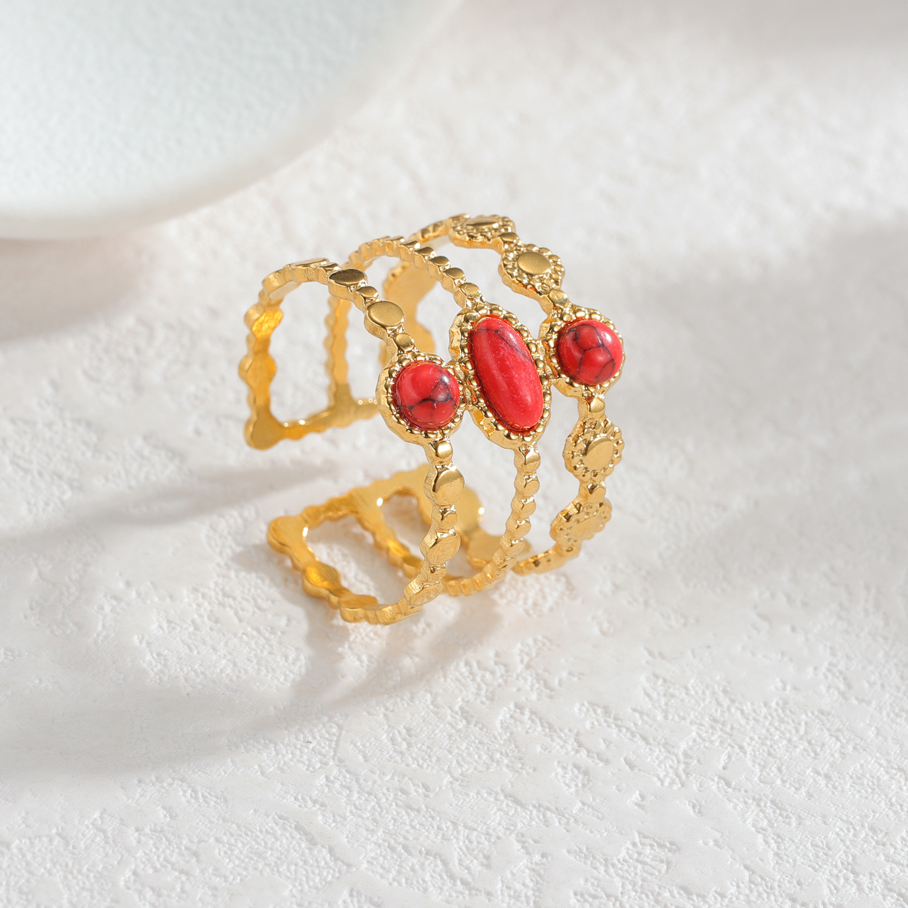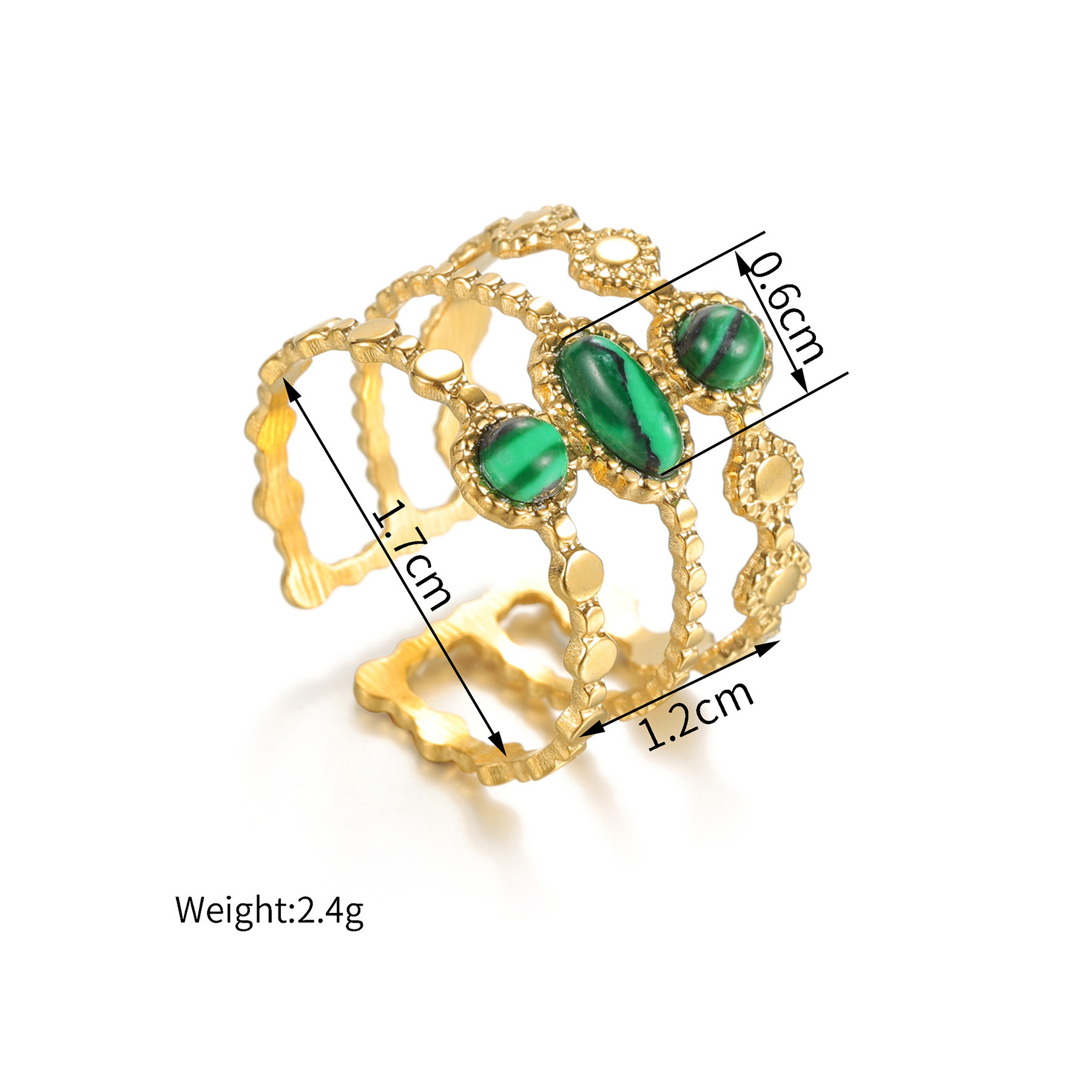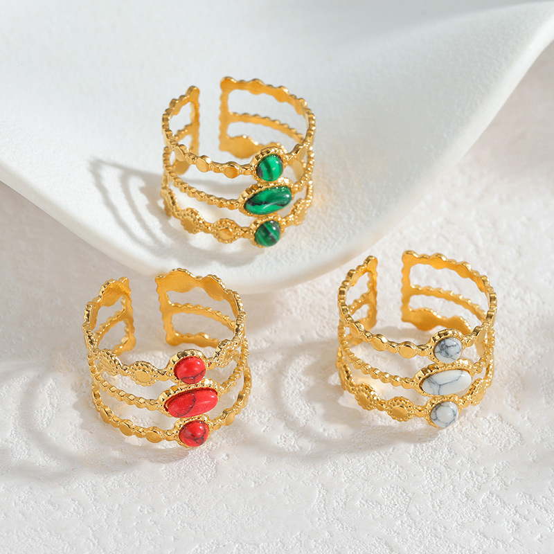 Bague en acier inoxydable, Acier inoxydable 304, avec turquoise synthétique, Placage, trois couches & différents matériaux pour le choix & pour femme, doré, Vendu par PC