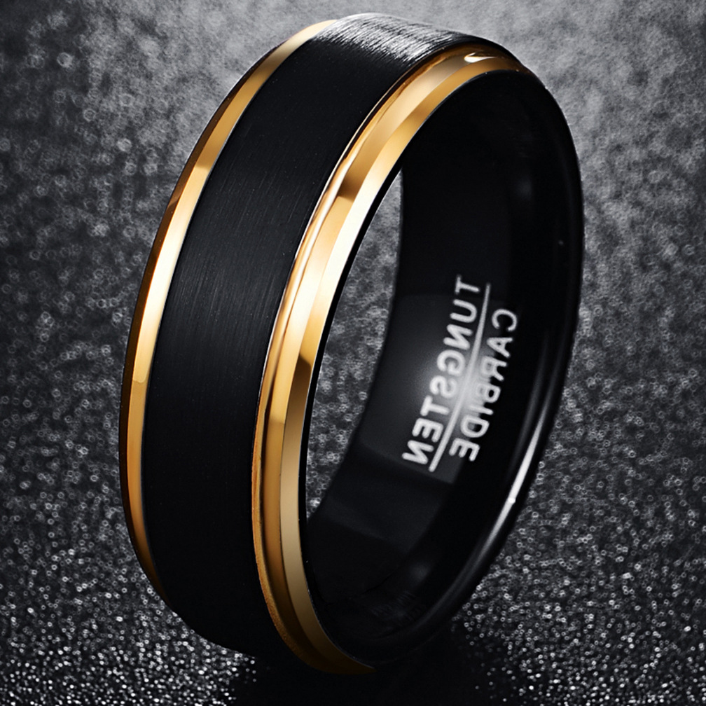 Bague en acier tungsten en vrac, Acier de tungstène, Placage ionique sous vide, normes différentes pour le choix & pour homme & deux tons & givré, Width :8mm, Thickness :2.3mm., Vendu par PC