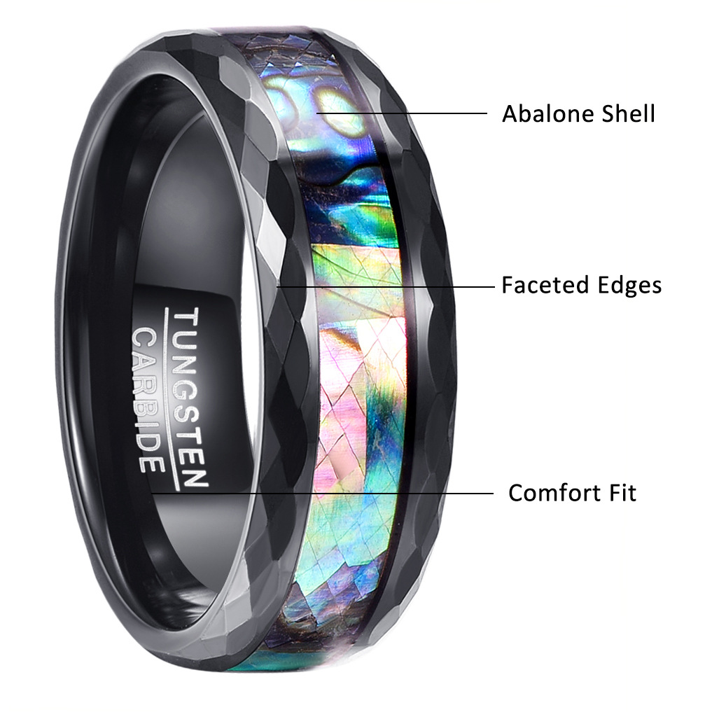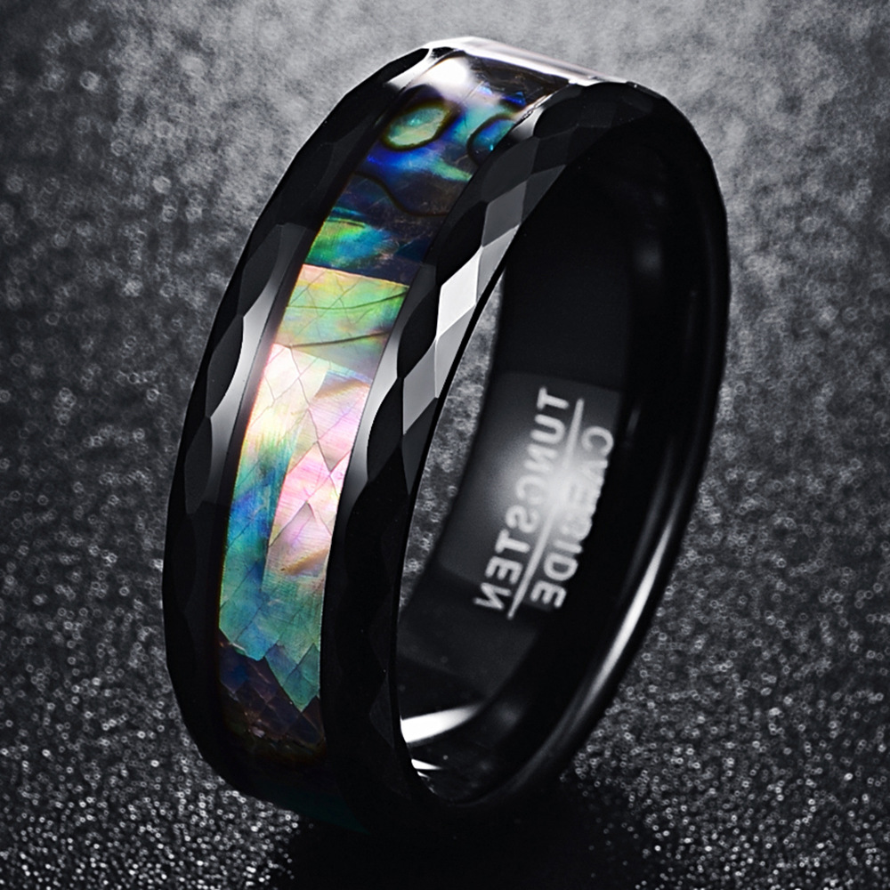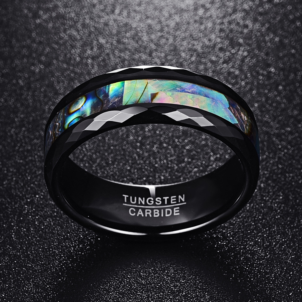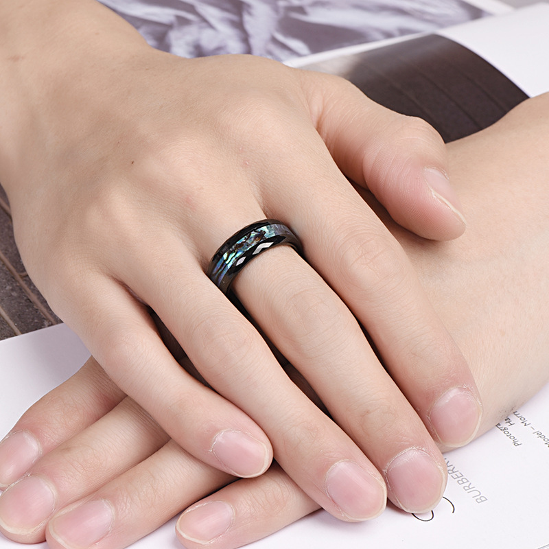 Bague en acier tungsten en vrac, Acier de tungstène, avec coquille d'ormeau, Placage, bijoux de mode & unisexe & normes différentes pour le choix, noire, Vendu par PC