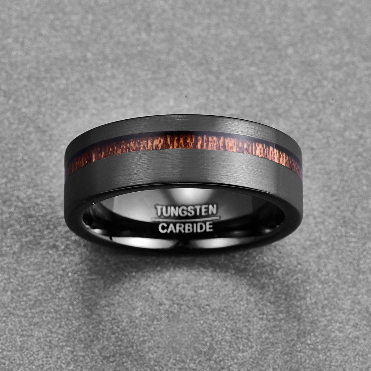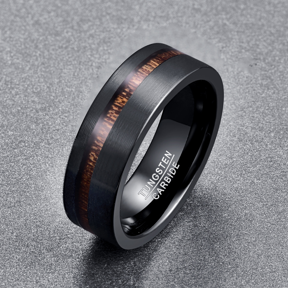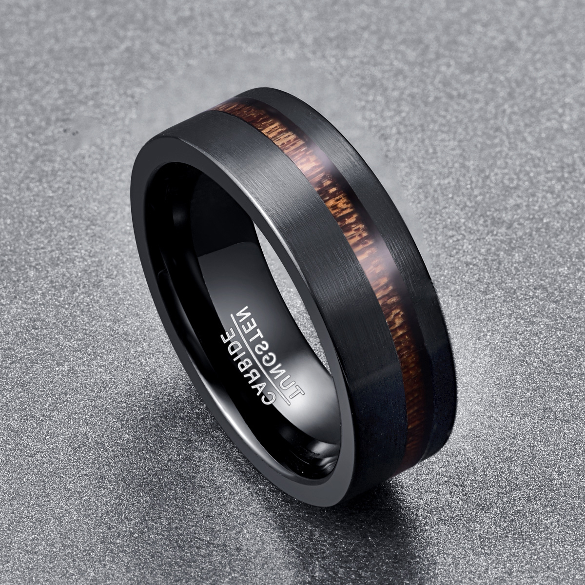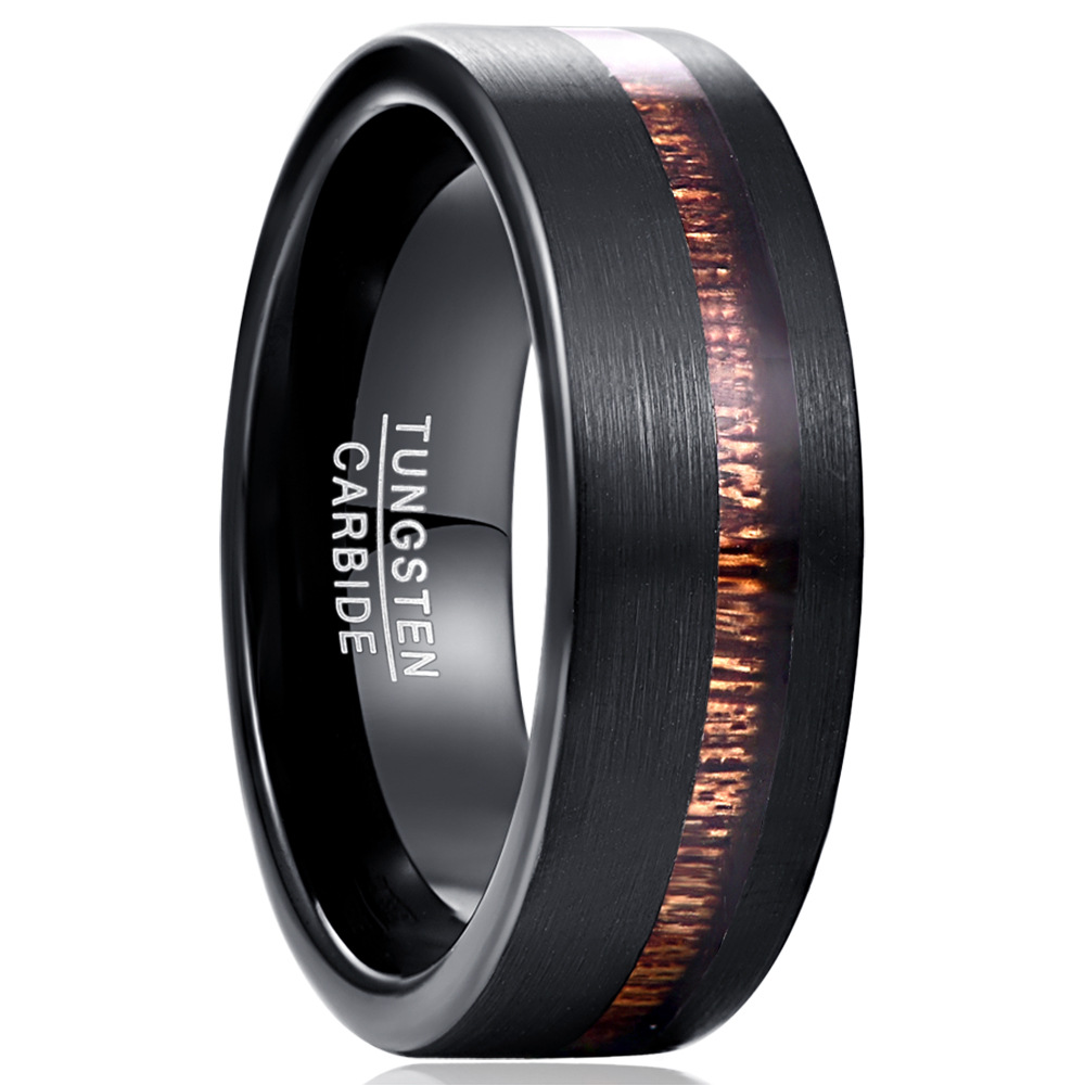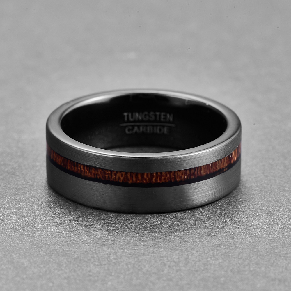 Bague en acier tungsten en vrac, Acier de tungstène, avec bois, Placage, bijoux de mode & normes différentes pour le choix & pour homme, noire, wide:8mm, Vendu par PC
