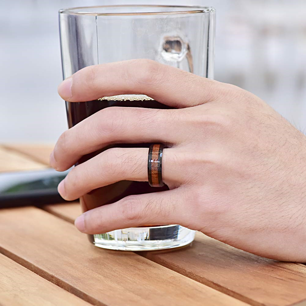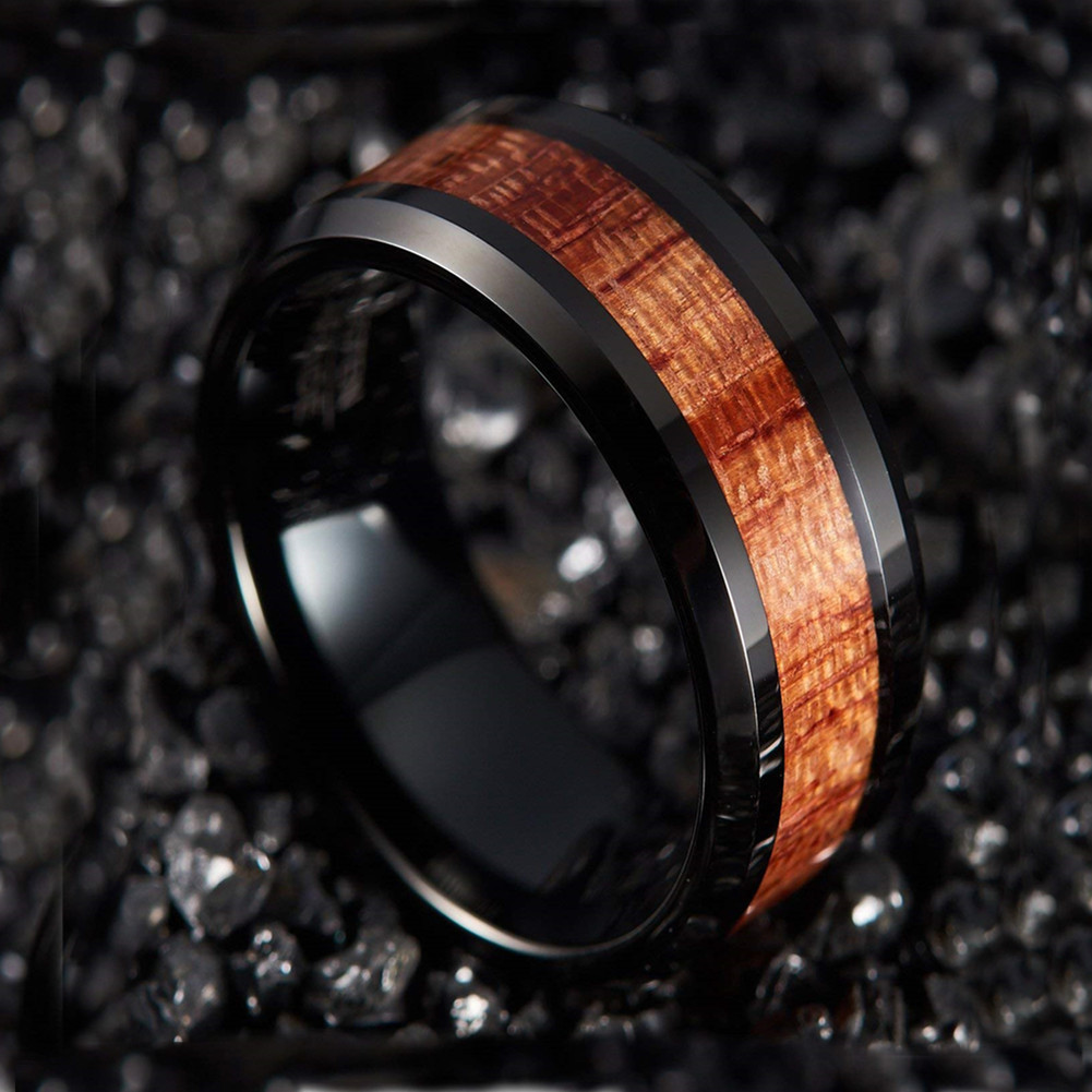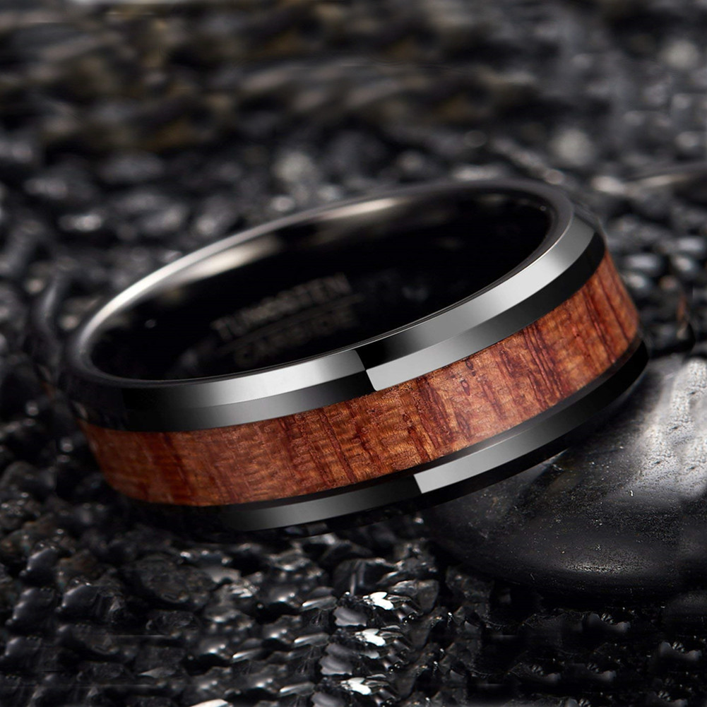 Bague en acier tungsten en vrac, Acier de tungstène, avec bois, Placage, bijoux de mode & normes différentes pour le choix & pour homme, noire, Vendu par PC