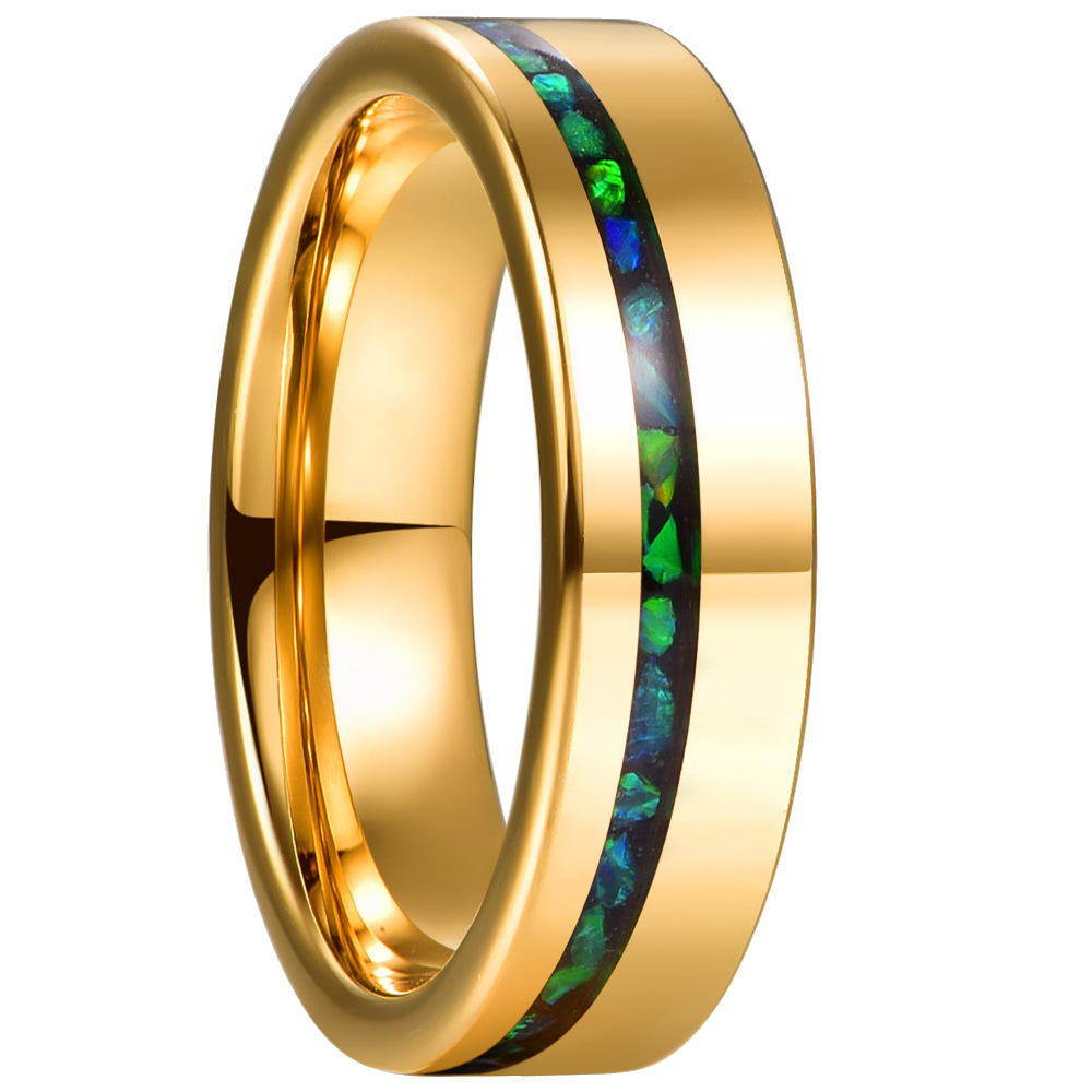 Bague en acier tungsten en vrac, Acier de tungstène, avec Opale, Placage, bijoux de mode & normes différentes pour le choix & pour homme, doré, wide:6mm, Vendu par PC