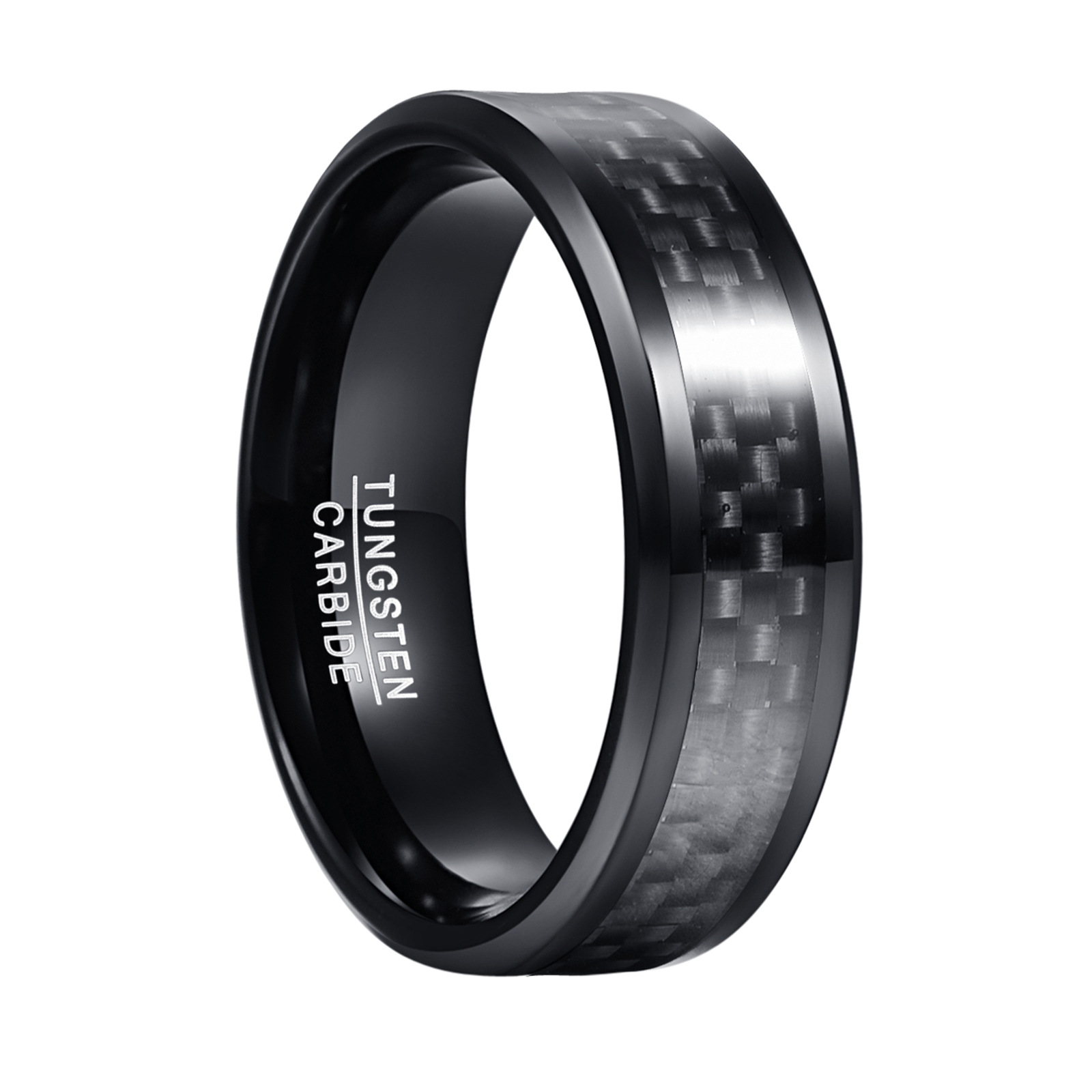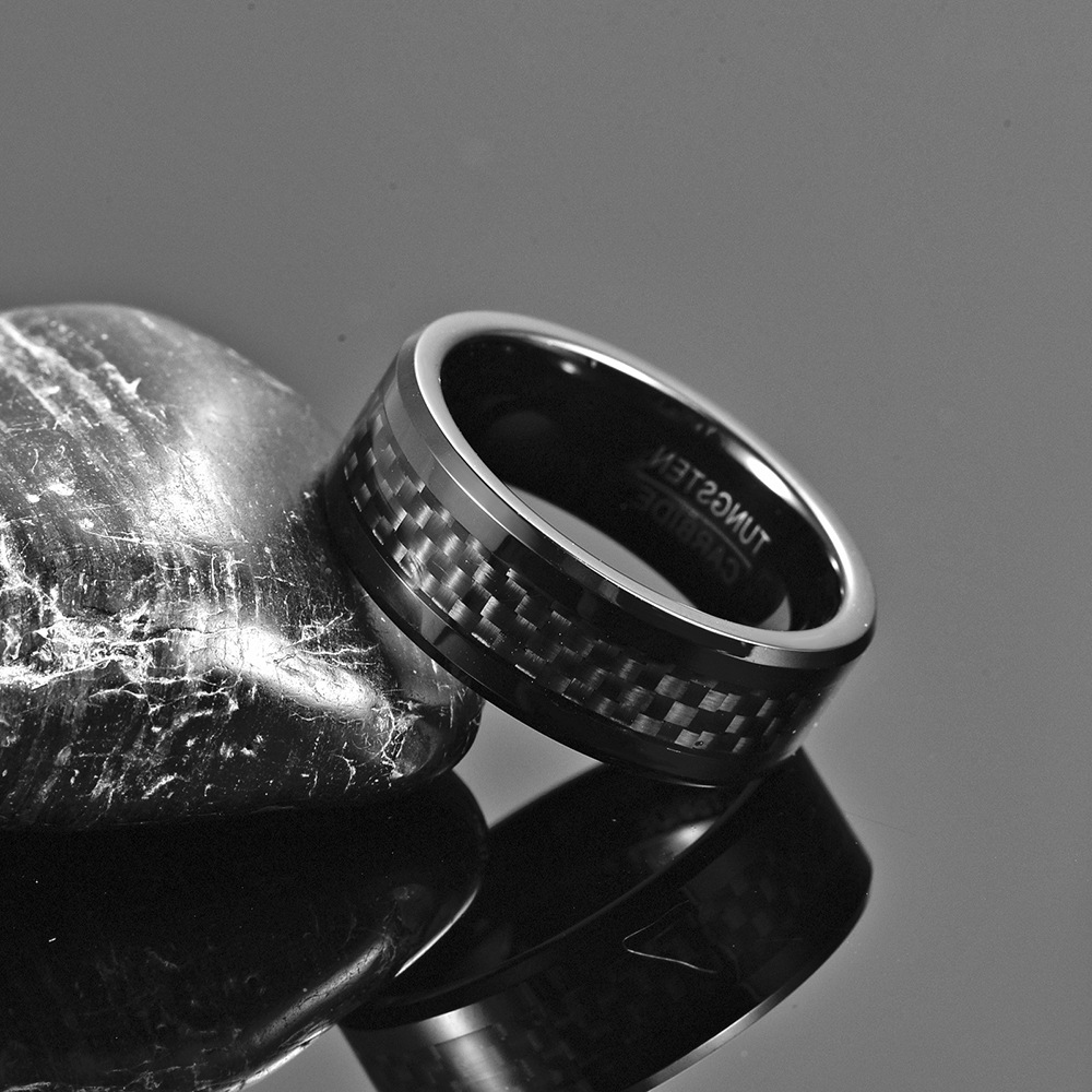 Bague en acier tungsten en vrac, Acier de tungstène, avec Fibre de carbone, Placage, bijoux de mode & normes différentes pour le choix & pour homme, noire, wide:8mm, Vendu par PC