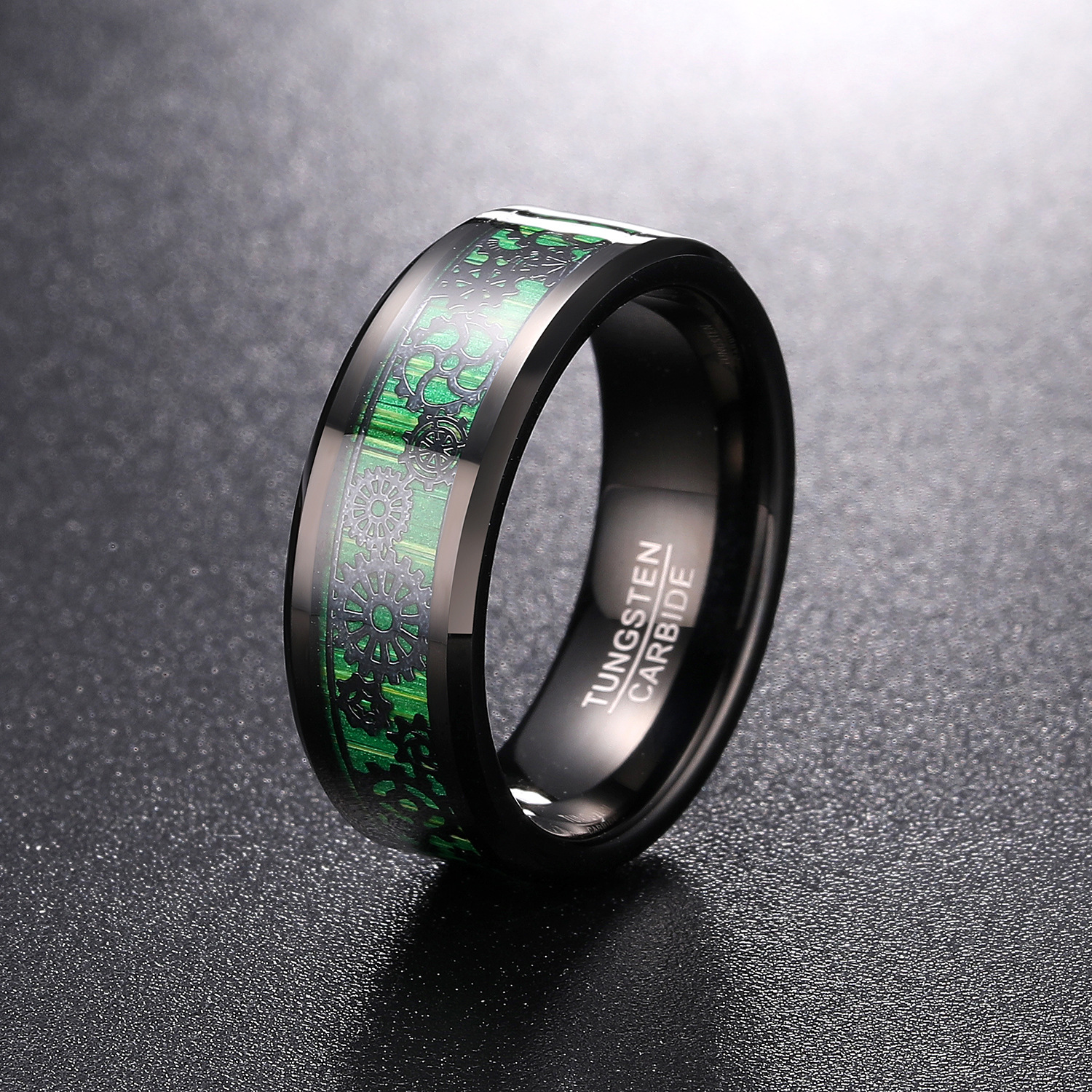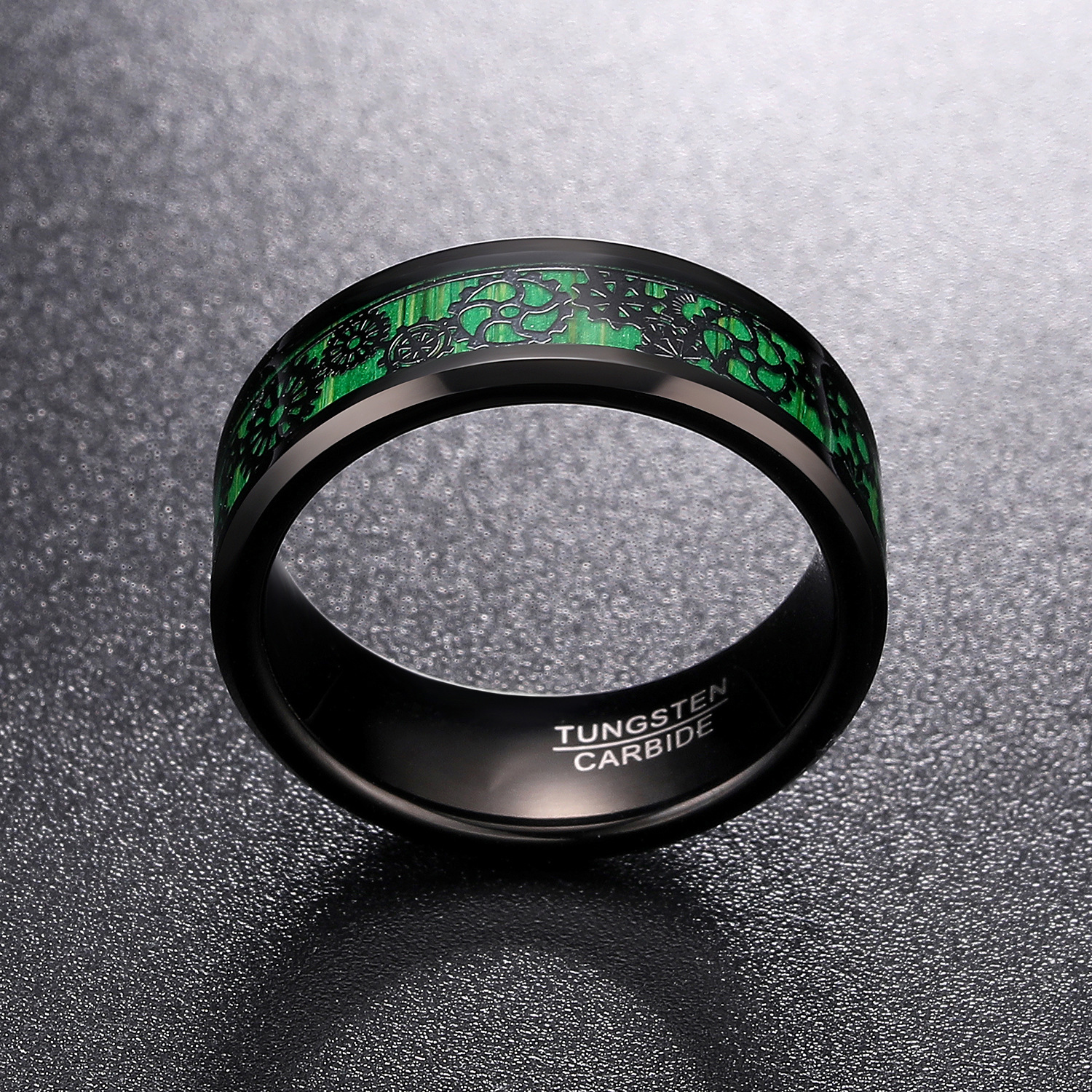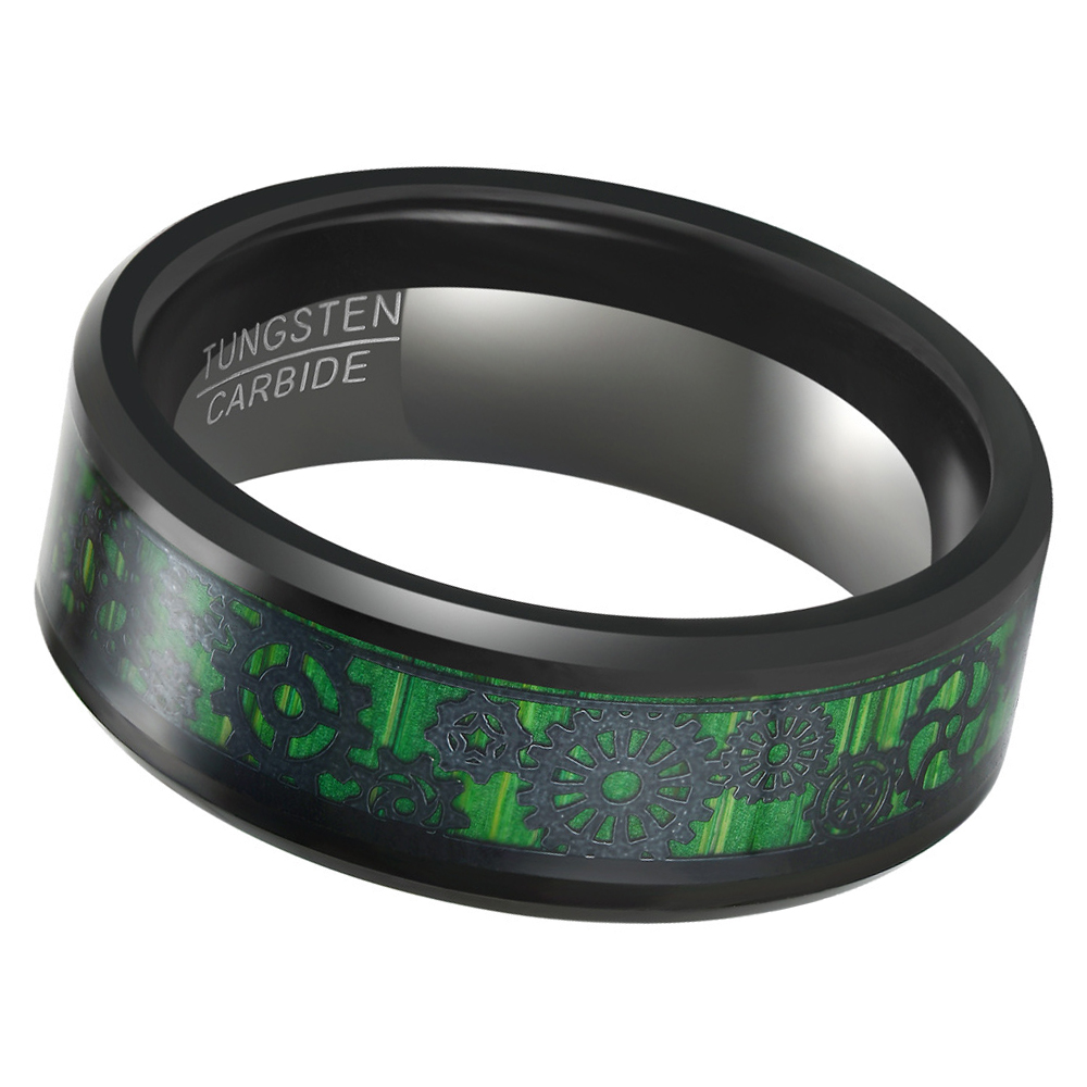 Bague en acier tungsten en vrac, Acier de tungstène, avec Fibre de carbone, Placage, bijoux de mode & normes différentes pour le choix & pour homme, noire, wide:8mm, Vendu par PC