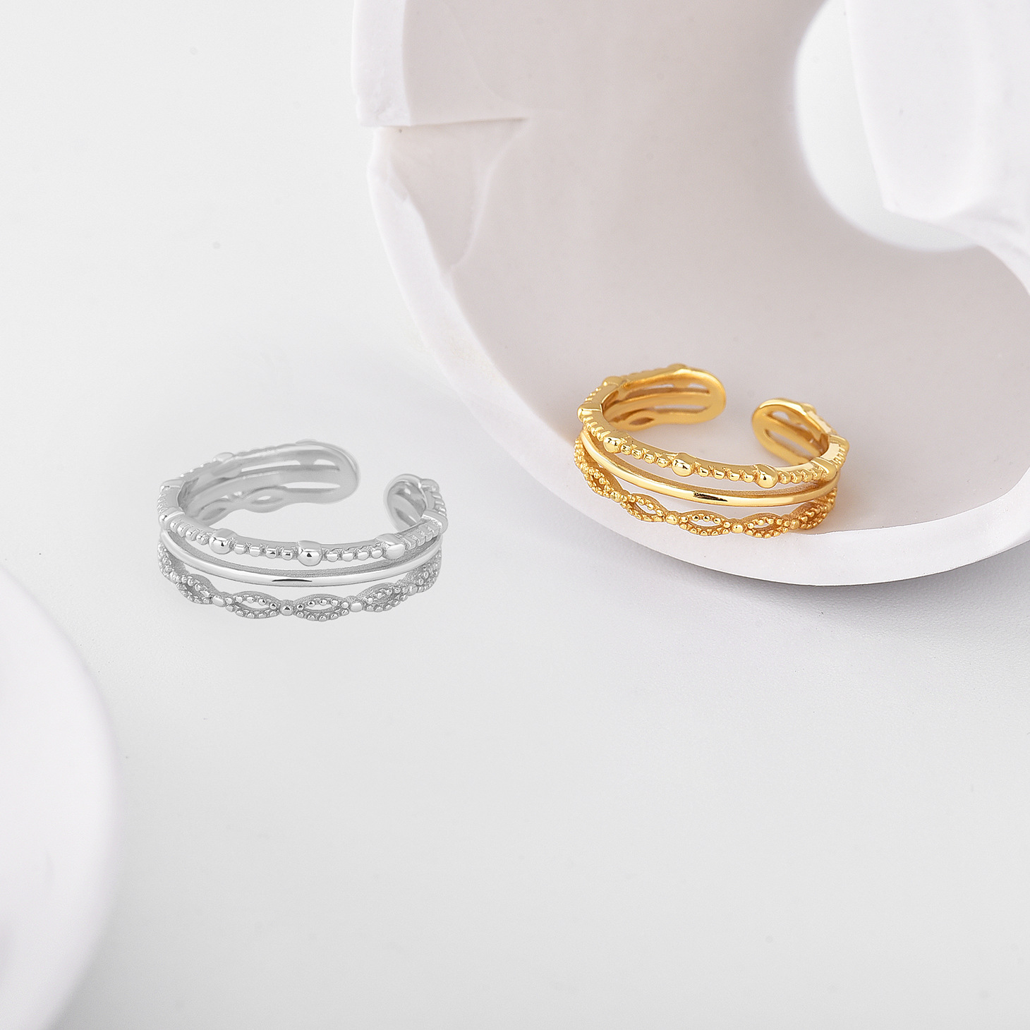 Bague en argent , argent sterling 925, Placage, deux tons, 5.5mm,3mm .5-8 Vendu par sac