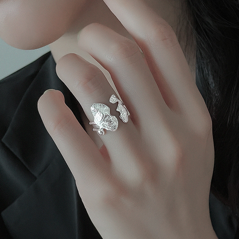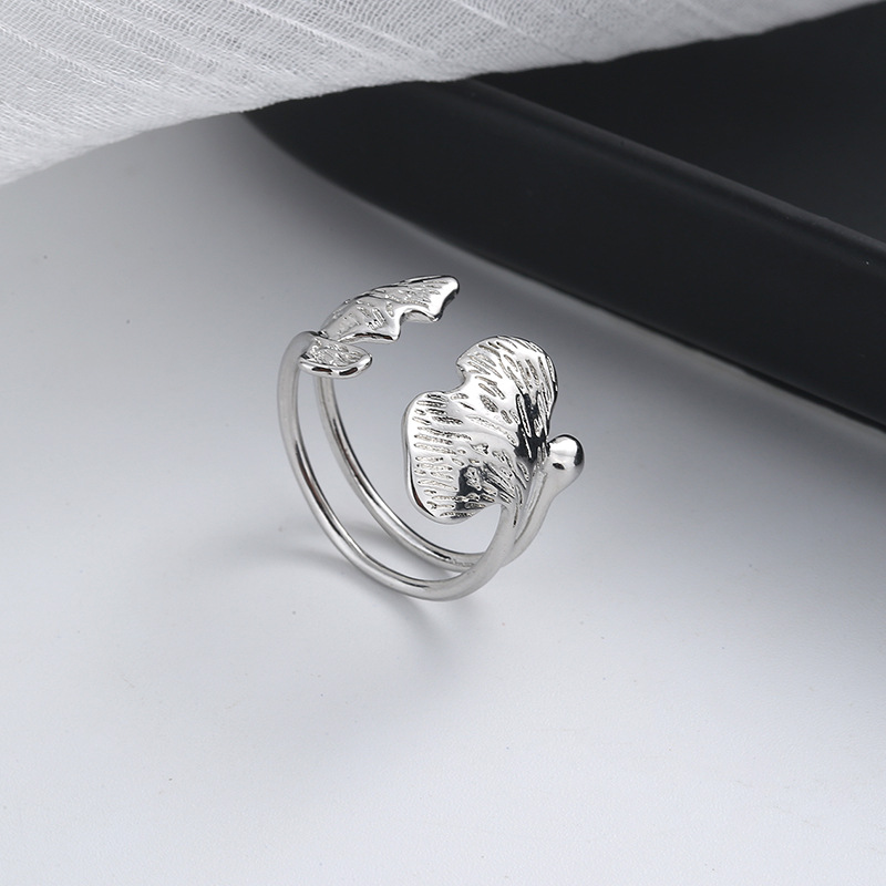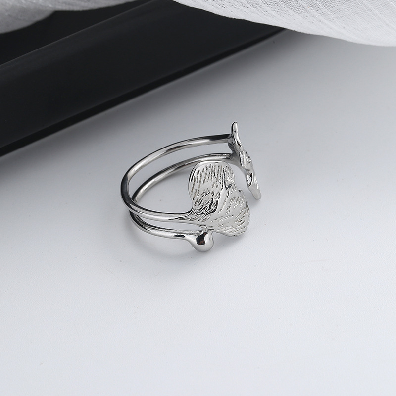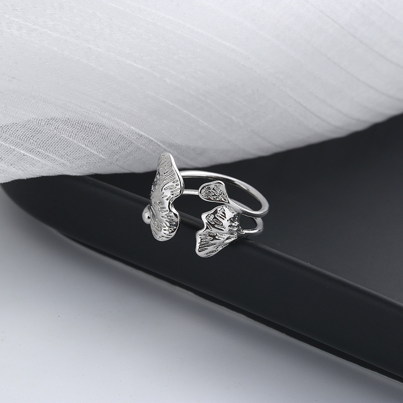 Bague en laiton, Ginkgo Feuille, Placage, pour femme, couleur platine, Vendu par PC