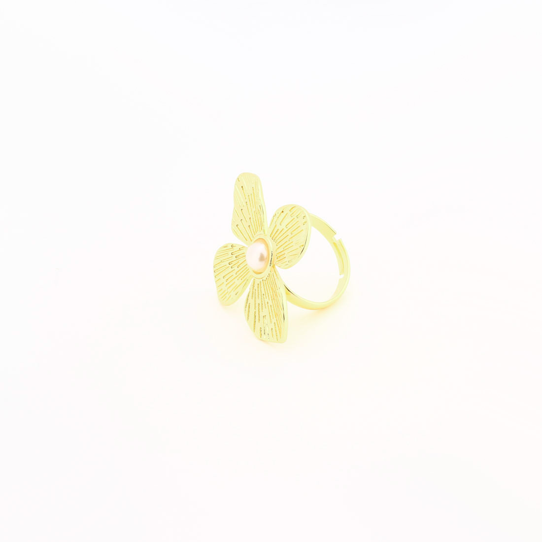 Bague en laiton, avec plastique, fleur, bijoux de mode & pour femme, doré, 34x31x1mm, Vendu par PC