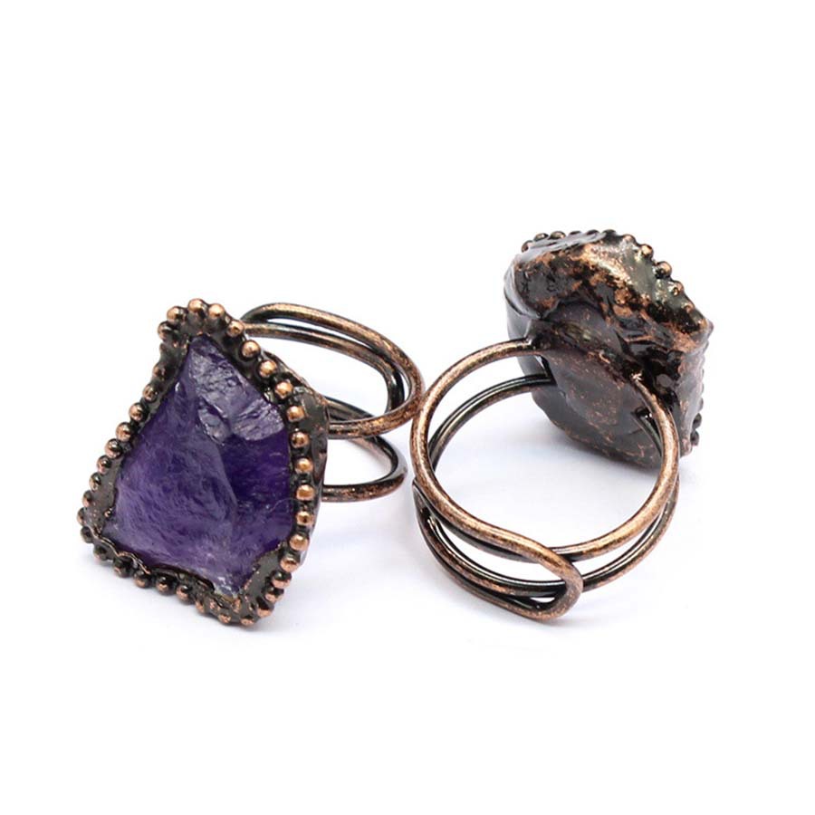 Bague en quartz, alliage de zinc, avec améthyste, Placage, bijoux de mode, plus de couleurs à choisir, 22x20mm, Vendu par PC