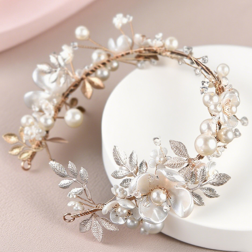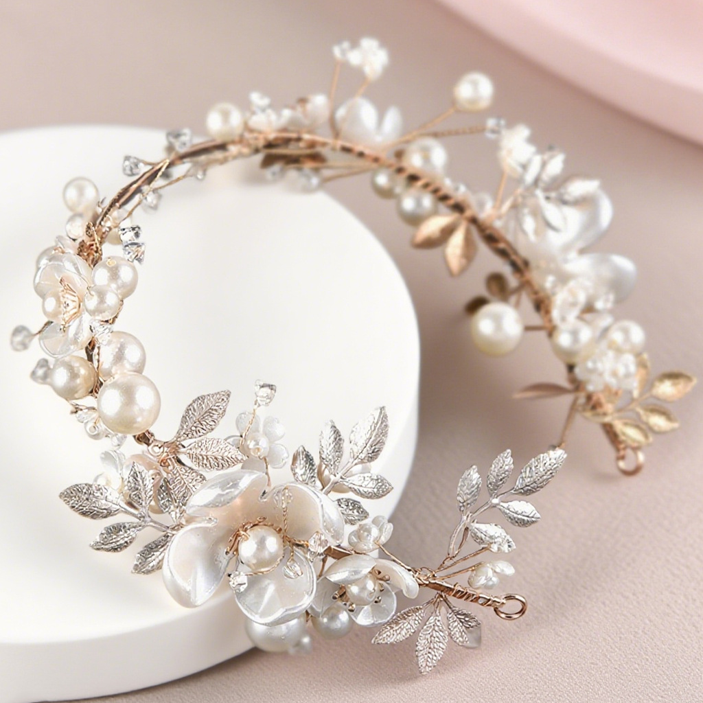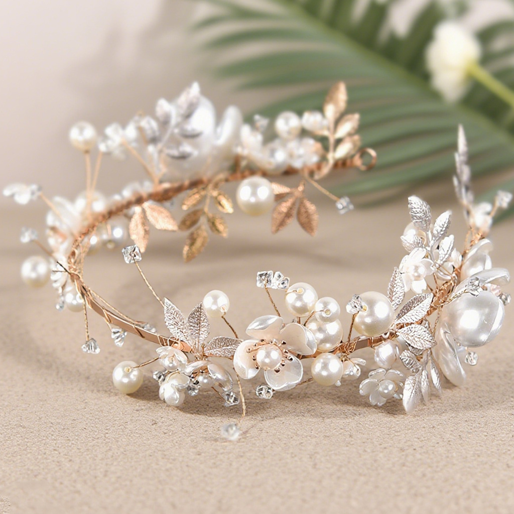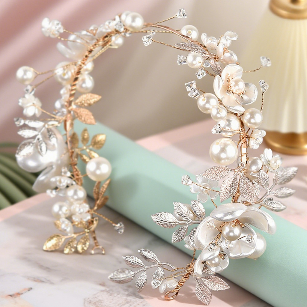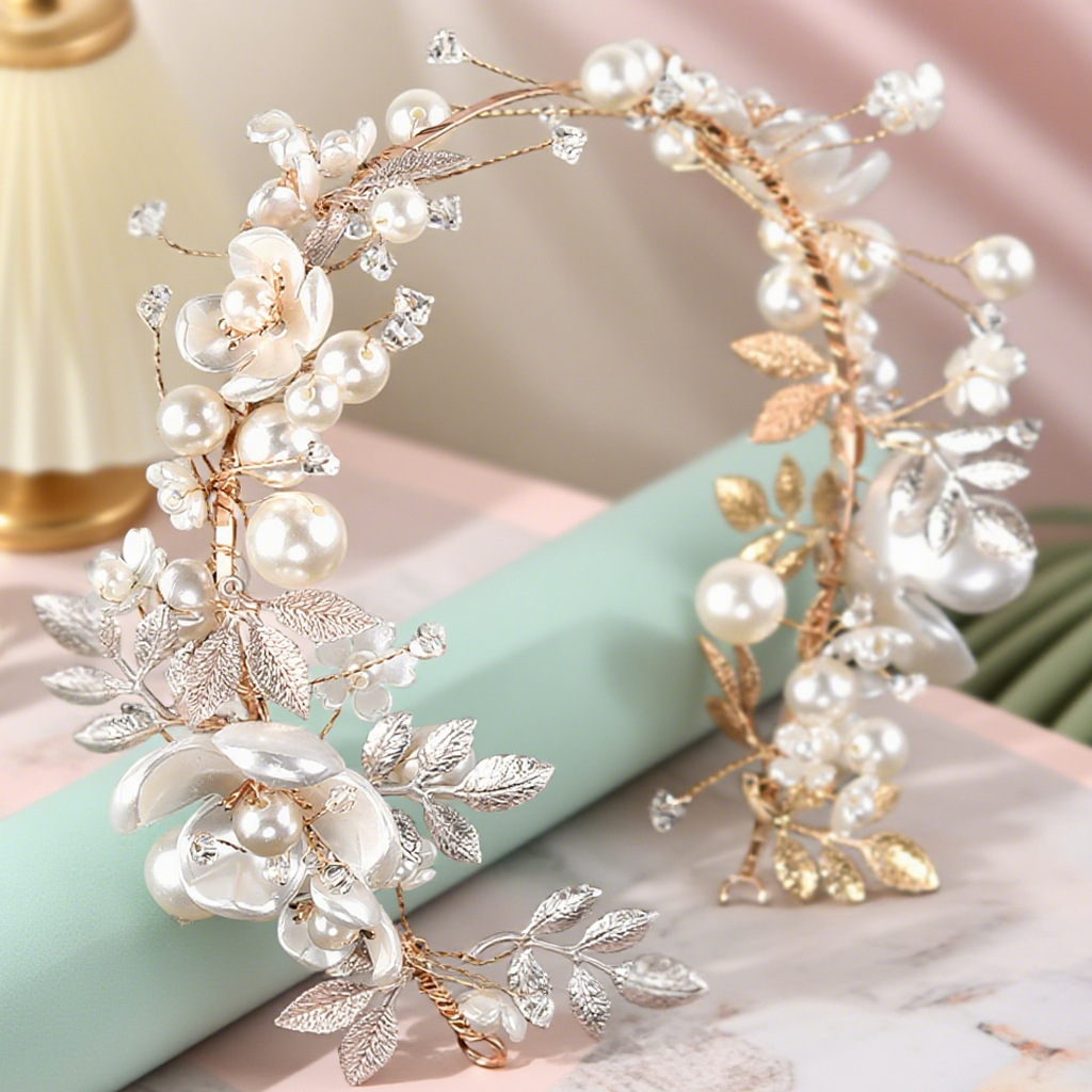 Bandeaux pour les cheveux, alliage de zinc, avec fil en laiton & Perle de CRYSTALLIZED™ & perle de plastique, fait à la main, bijoux de mode & pour femme, doré, 160x170mm, Vendu par PC