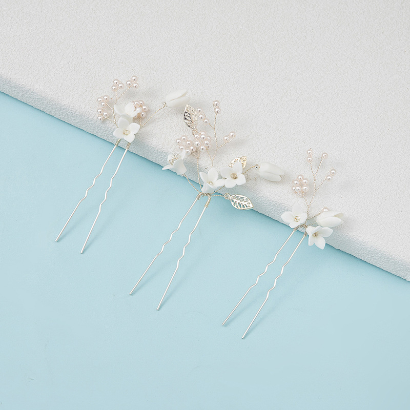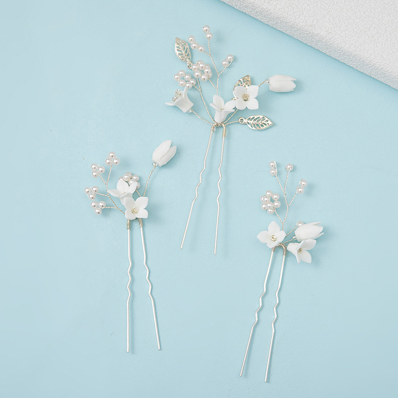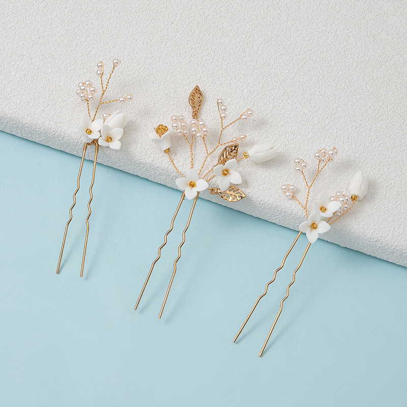 Bâton de cheveux, alliage de zinc, avec fil en laiton & argile de polymère & perle de plastique, fait à la main, trois pièces & bijoux de mode & pour femme, plus de couleurs à choisir, 125x65mm, Vendu par fixé