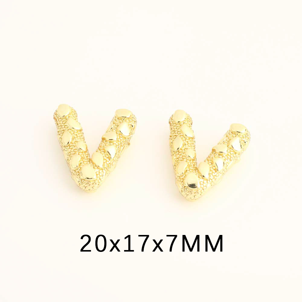 Beaucoup de perles de cuivre, laiton, Lettre V, DIY, doré, Vendu par PC