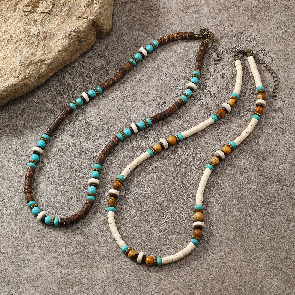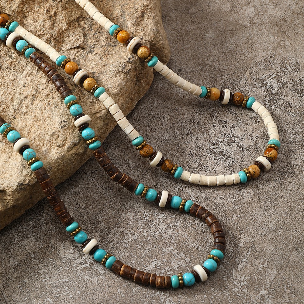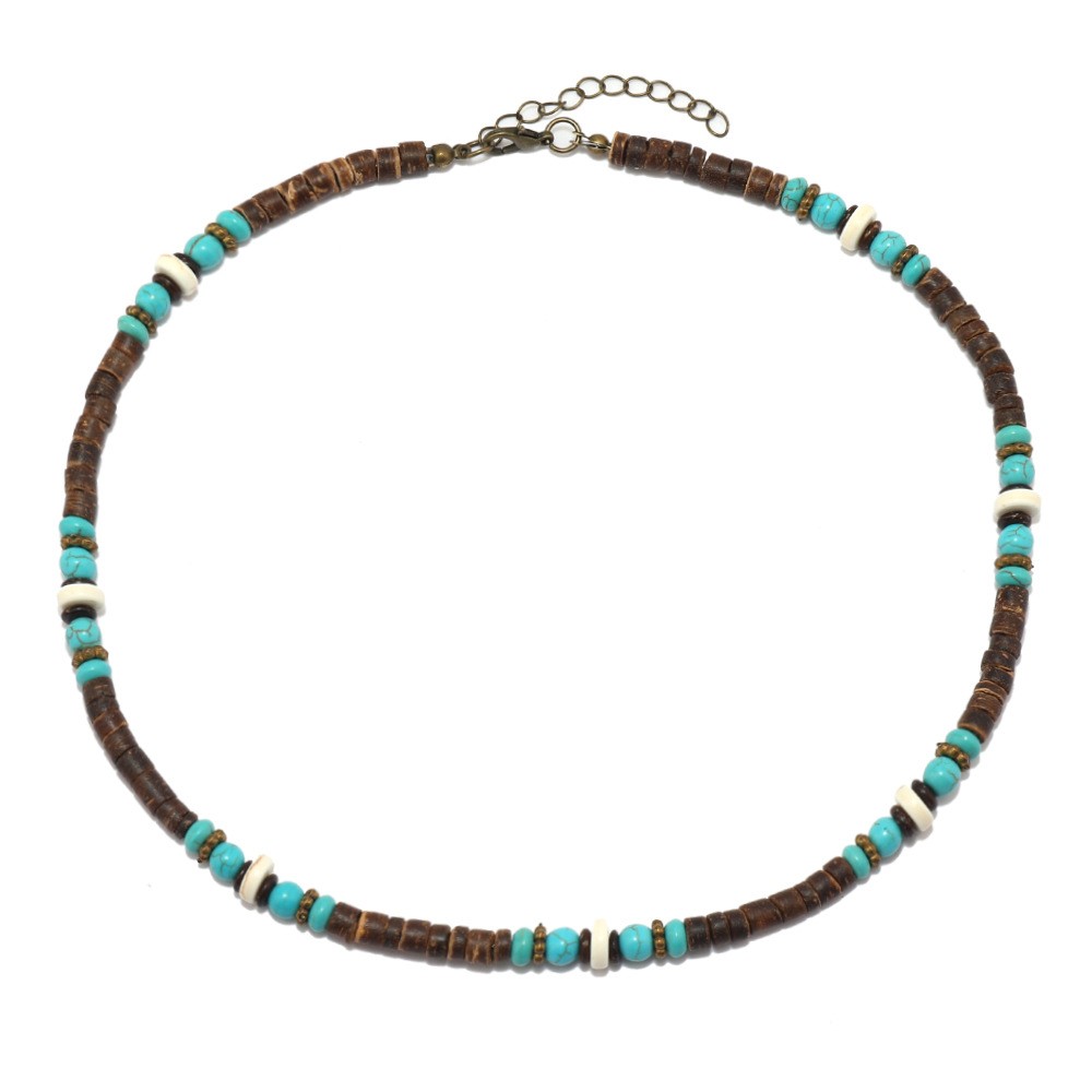 Bijoux Collier en bois, avec turquoise & Gemme synthétique, Placage, bijoux de mode & pour homme, Longueur:Environ 44 cm, Vendu par PC