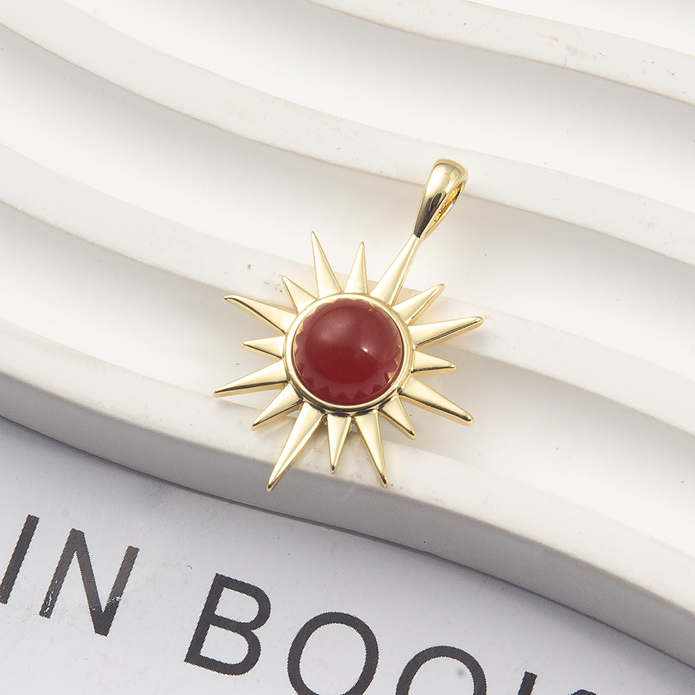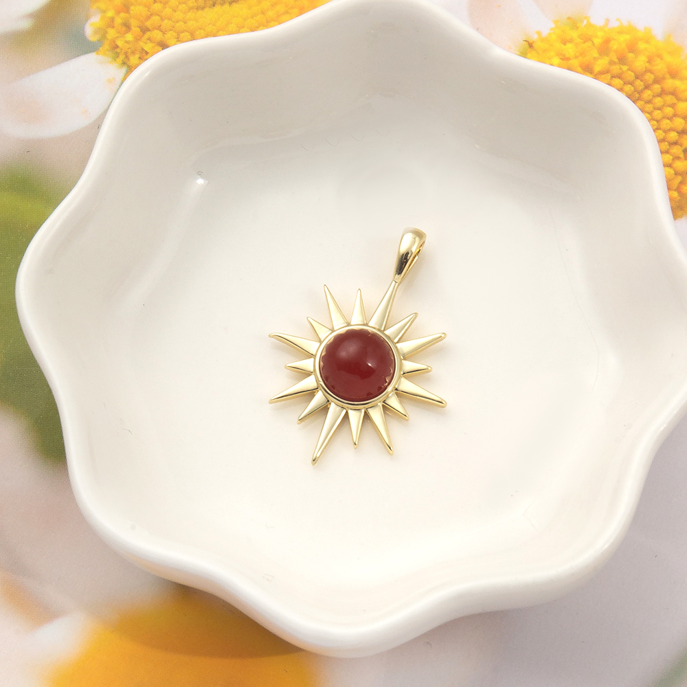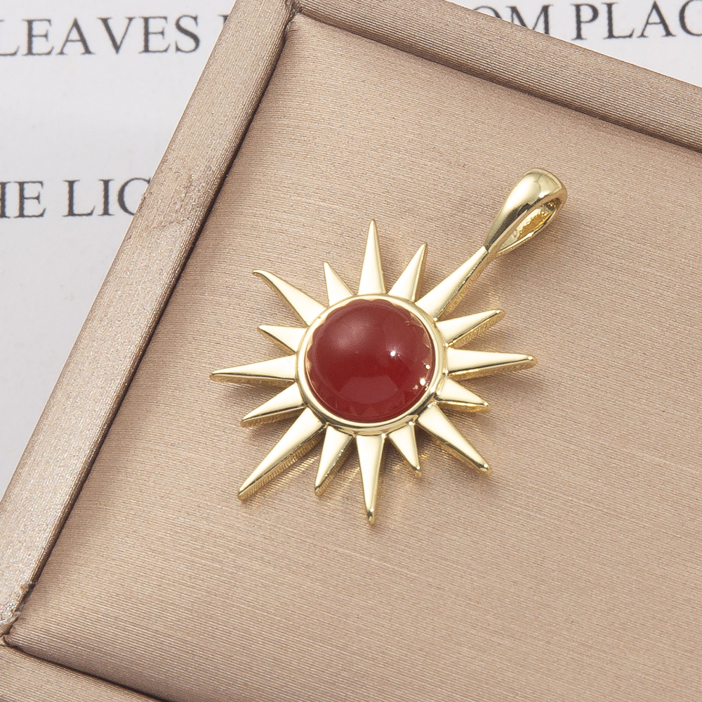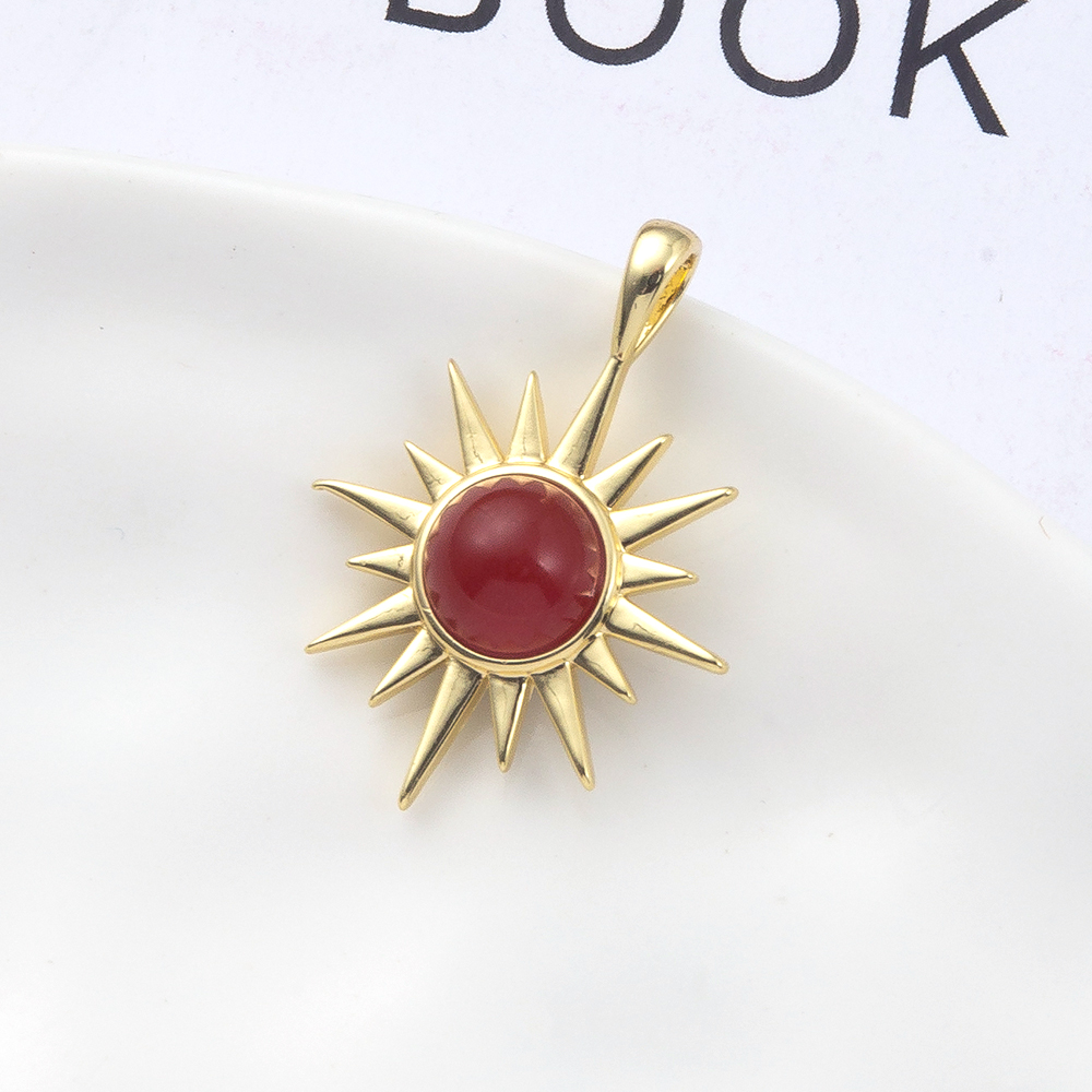 Bijoux Pendentif en résine, laiton, avec résine, soleil, Placage de couleur d'or, DIY, rouge, 20.6x6x29mm, Vendu par PC
