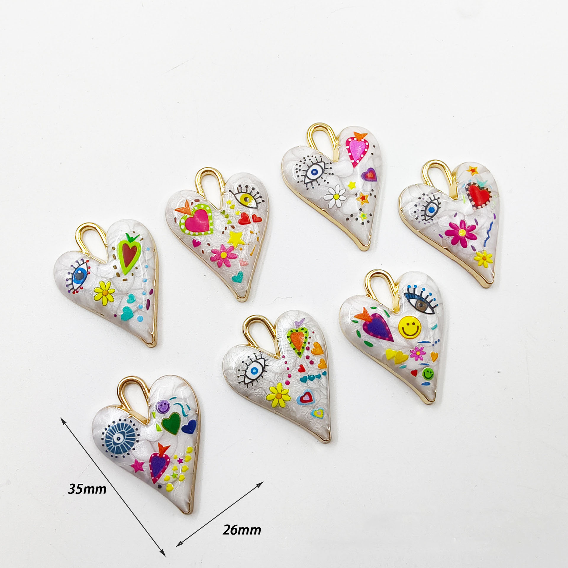 Bijoux Pendentif en résine, avec alliage de zinc, coeur, Placage de couleur d'or, DIY & modèles différents pour le choix, plus de couleurs à choisir, 35x26mm, Environ 100PC/sac, Vendu par sac