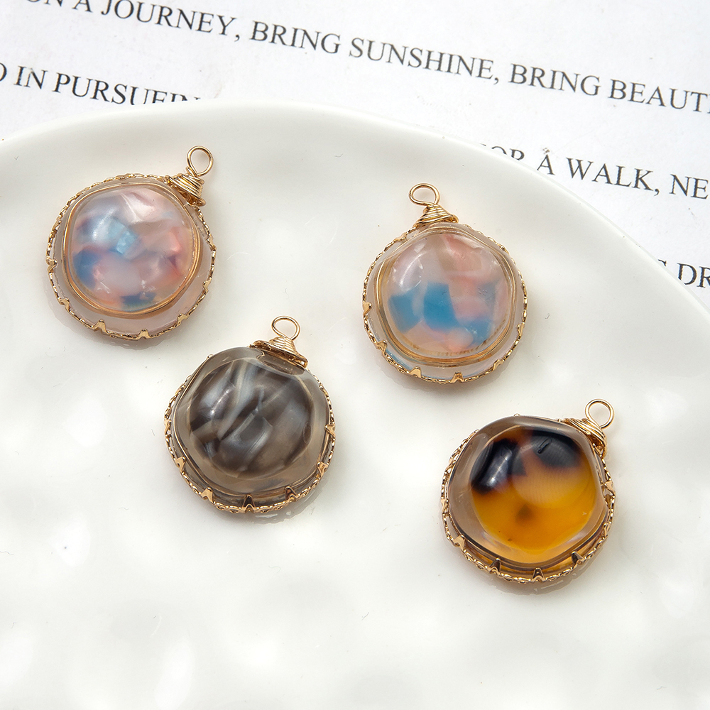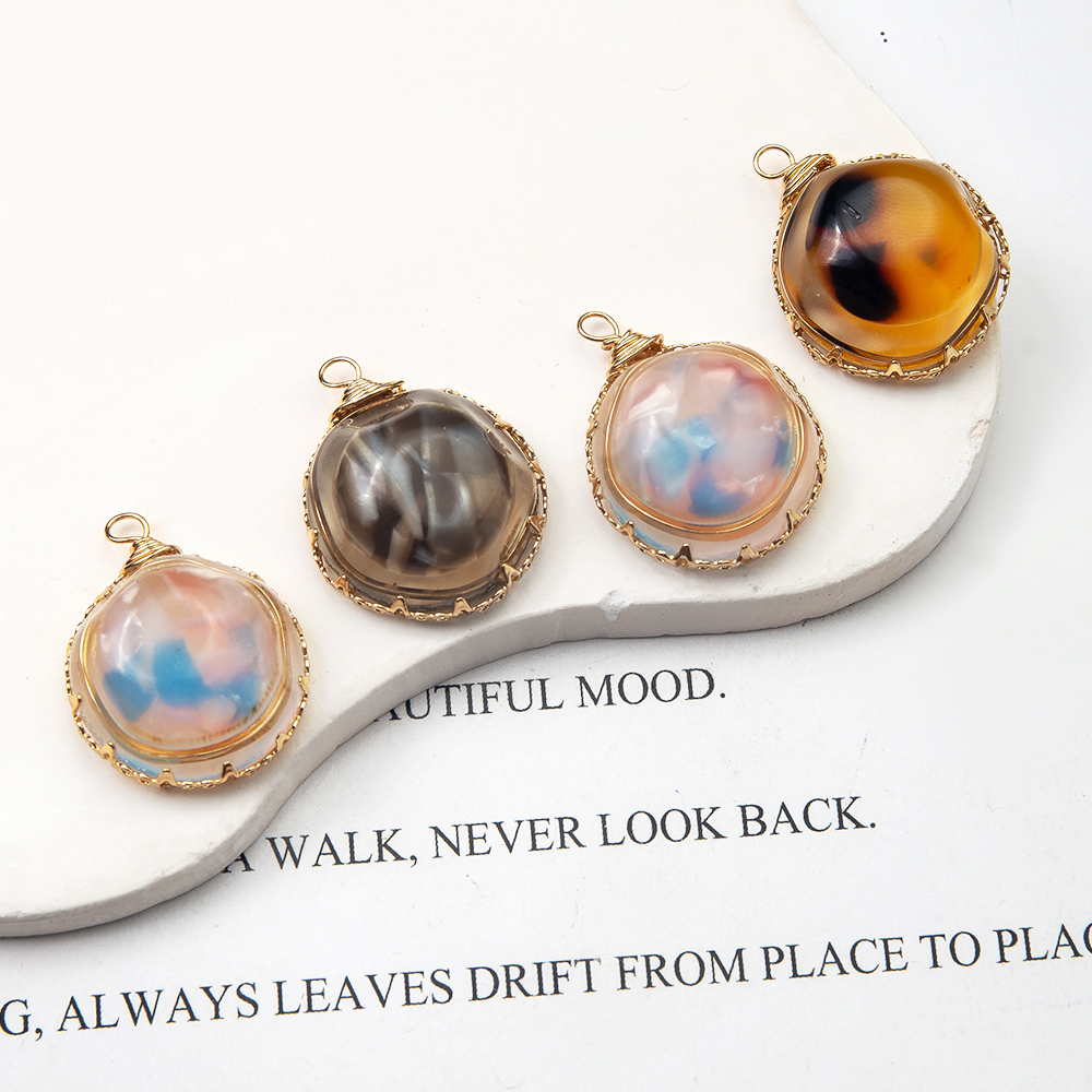 Bijoux Pendentif en résine, avec laiton, Rond, DIY, plus de couleurs à choisir, 21.5x10.3x27.1mm, Vendu par PC