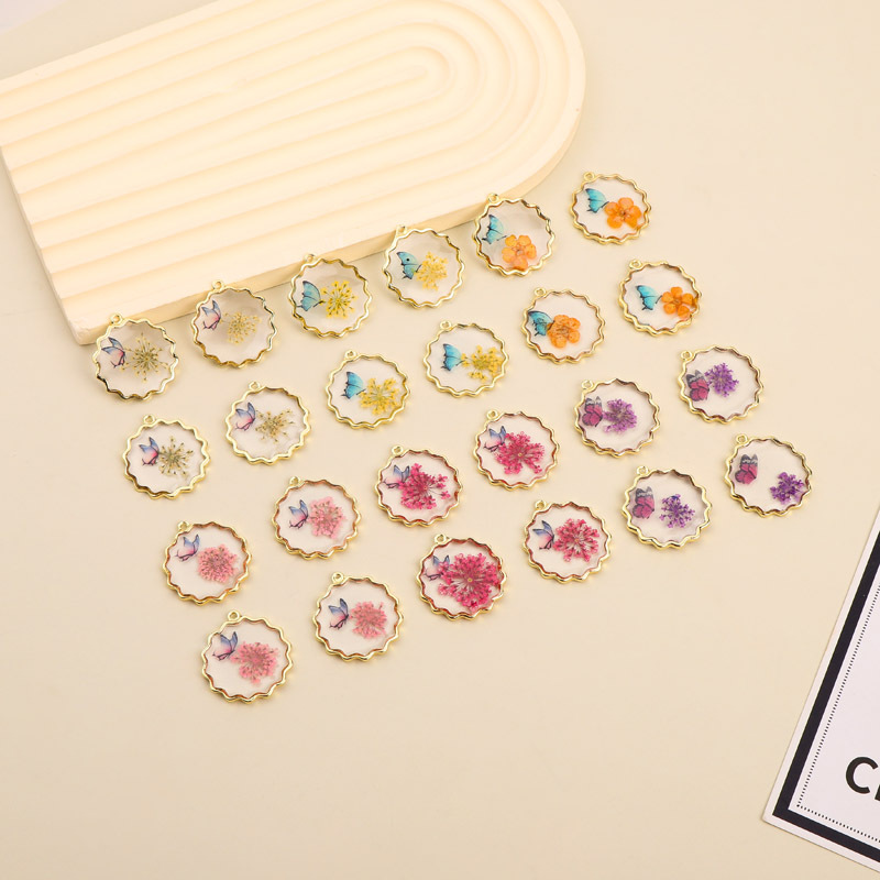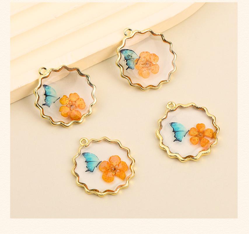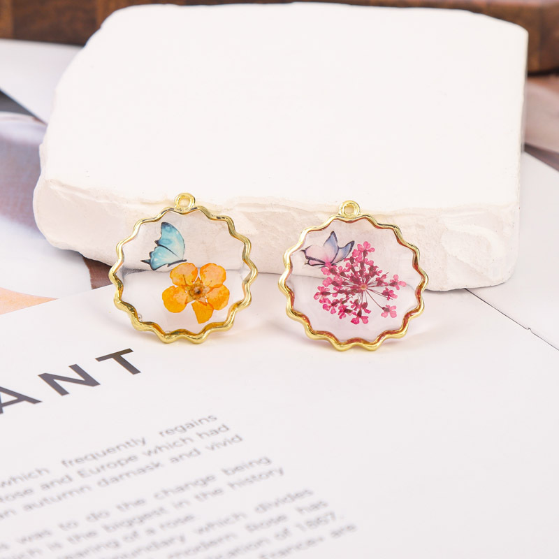 Bijoux Pendentif en résine, avec Fleurs séchées & alliage de zinc, Placage, DIY, plus de couleurs à choisir, 29x26mm, Vendu par PC