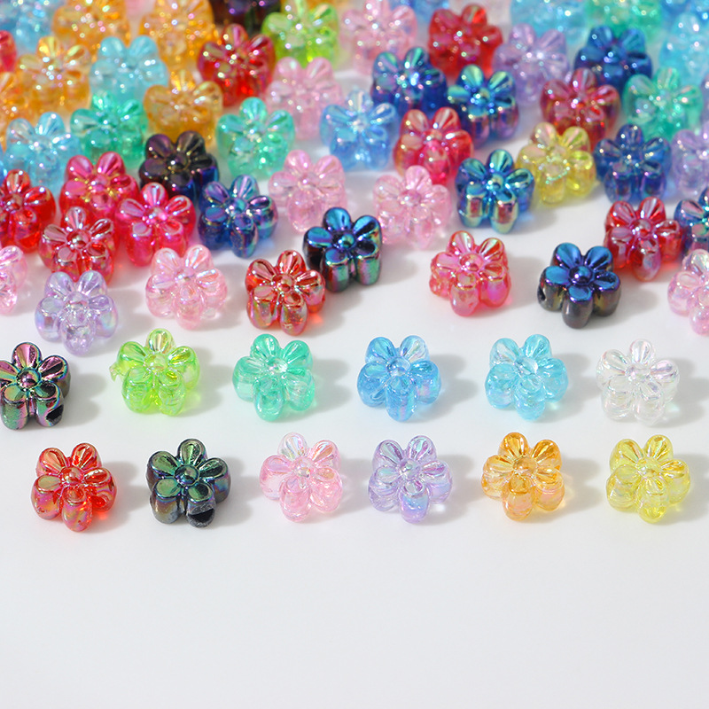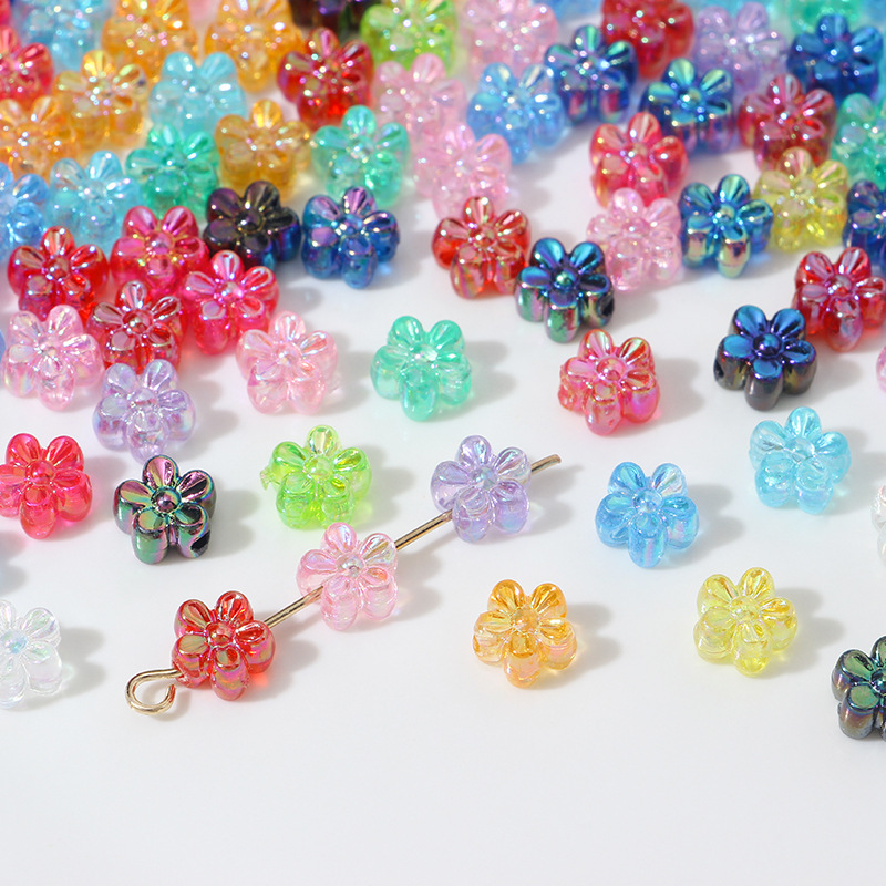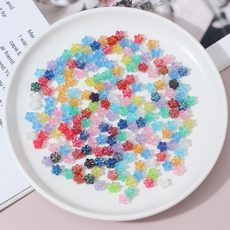Bijoux Perles en résine, fleur, Placage de couleur AB, DIY, plus de couleurs à choisir, The diameter is about 7mm, 100PC/sac, Vendu par sac