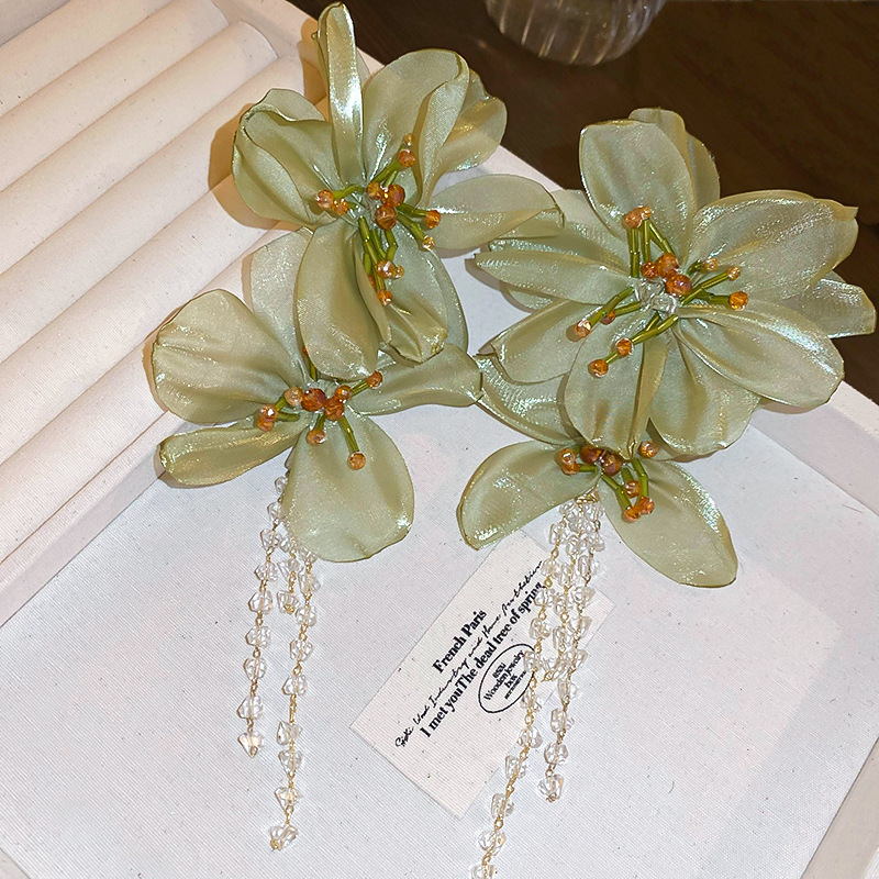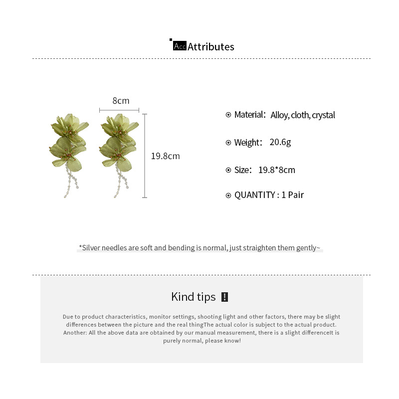 Bijoux boucle d'oreille a la mode, alliage de zinc, avec tissu & cristal, fleur, bijoux de mode & pour femme, vert, Vendu par paire