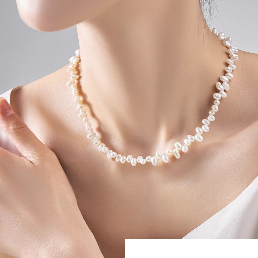 Bijoux de perle d'eau douce naturelle, perle d'eau douce cultivée, Bracelet & collier, avec perles de rocaille en verre, blanc, 5-6mm pouce,  18 pouce, Vendu par fixé