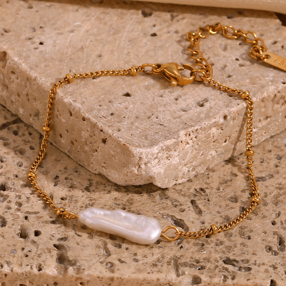 Bijoux de perle d'eau douce naturelle, Acier inoxydable 304, avec perle d'eau douce cultivée, Plaqué or 18K, bijoux de mode & styles différents pour le choix & pour femme, Vendu par PC