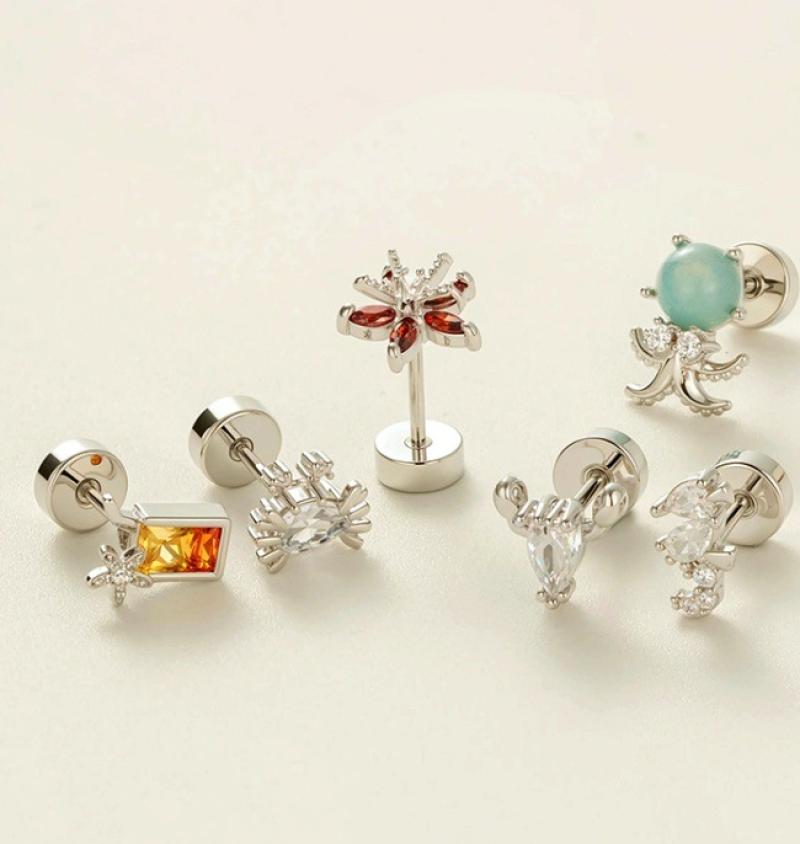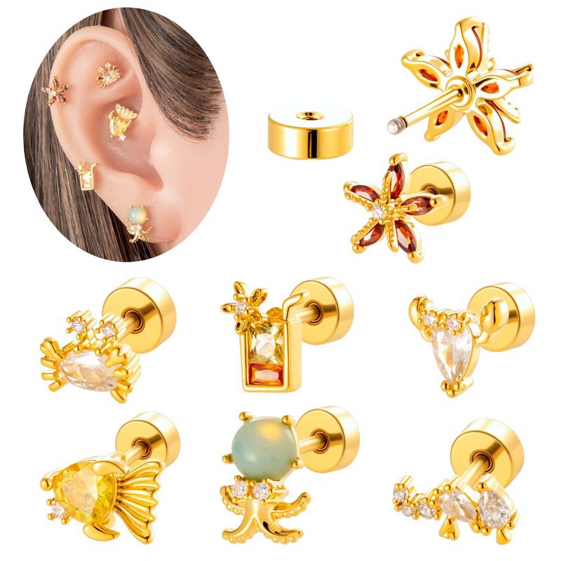 Bijoux de piercing d'oreille en acier inoxydable, Placage, avec zircone cubique, couleurs mélangées Vendu par PC