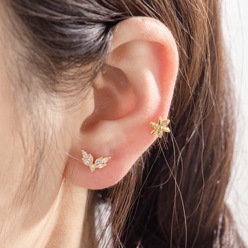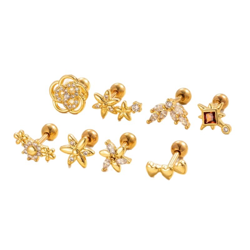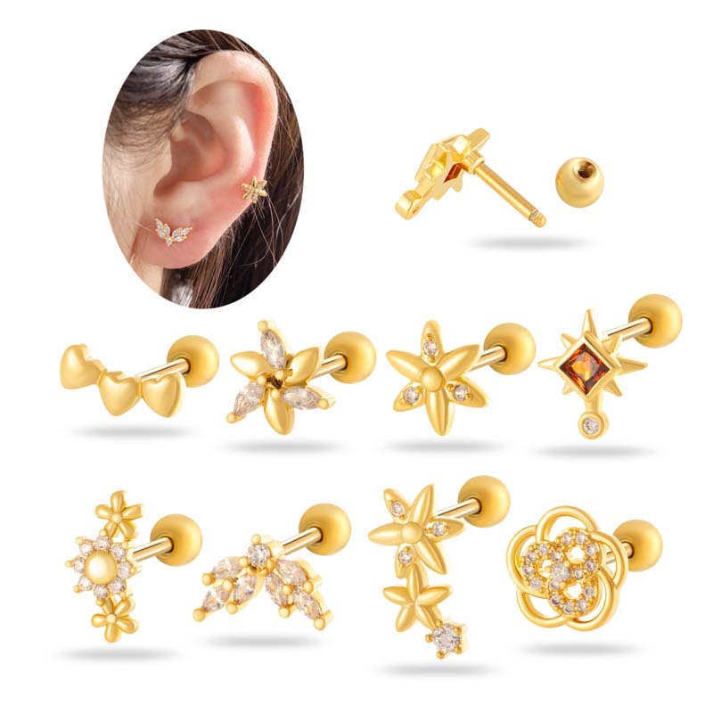 Bijoux de piercing d'oreille en acier inoxydable, Acier titane, avec laiton, Placage de couleur d'or, bijoux de mode & pavé de micro zircon, plus de couleurs à choisir, Vendu par PC