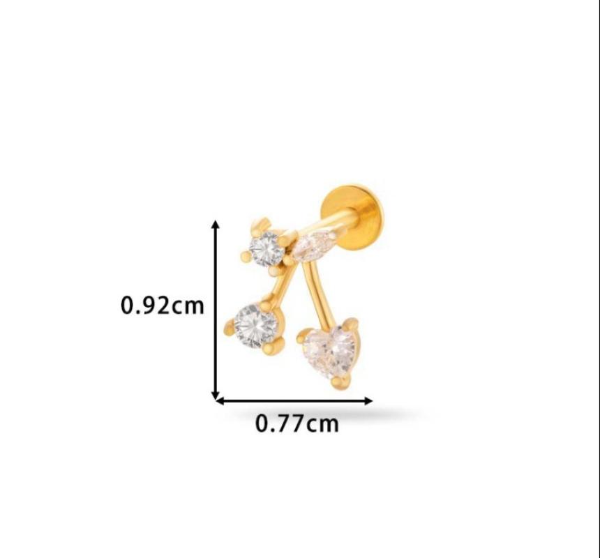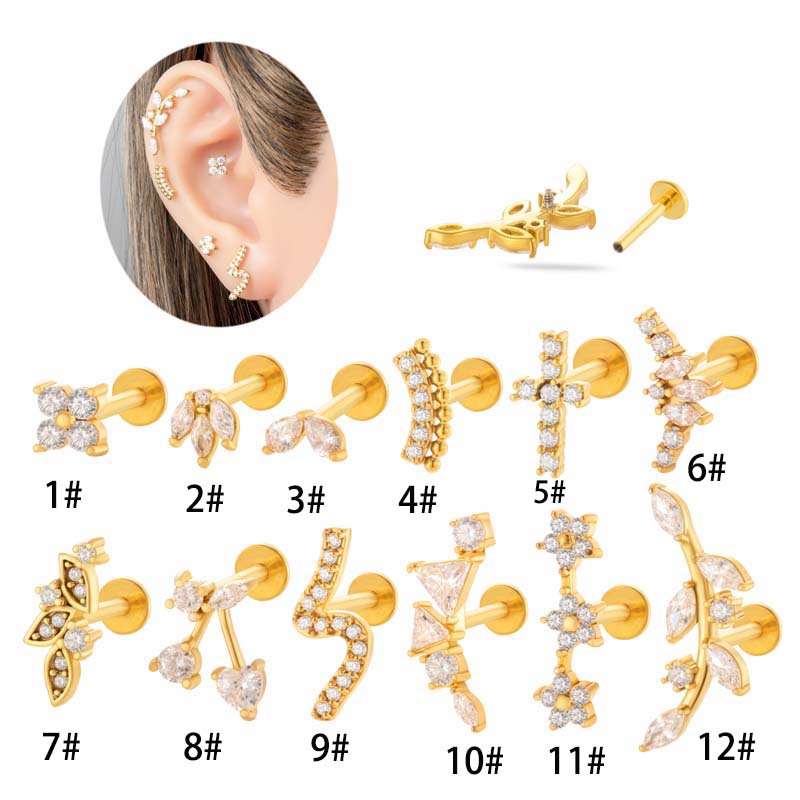 Bijoux de piercing d'oreille en acier inoxydable, Placage, avec zircone cubique, couleurs mélangées Vendu par PC