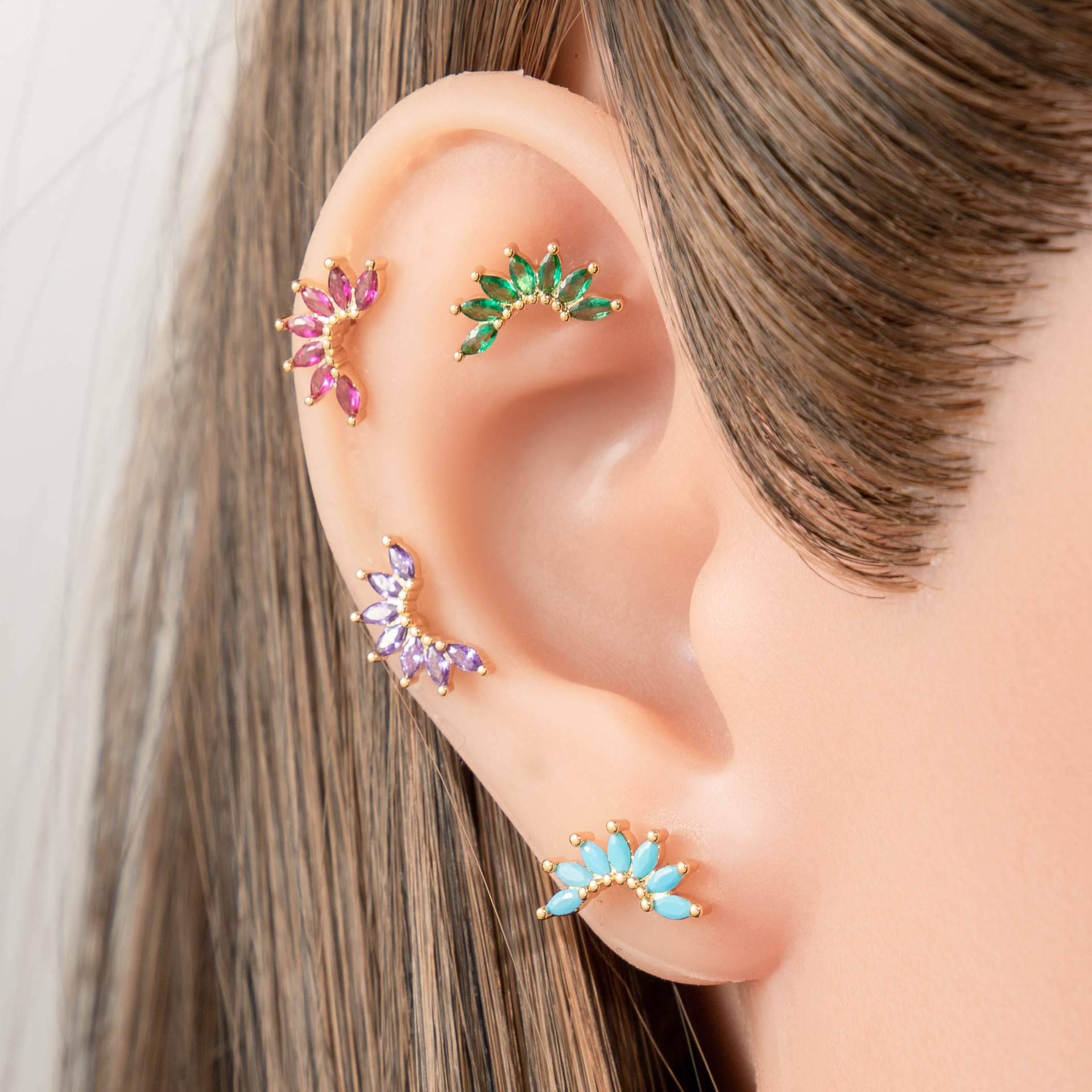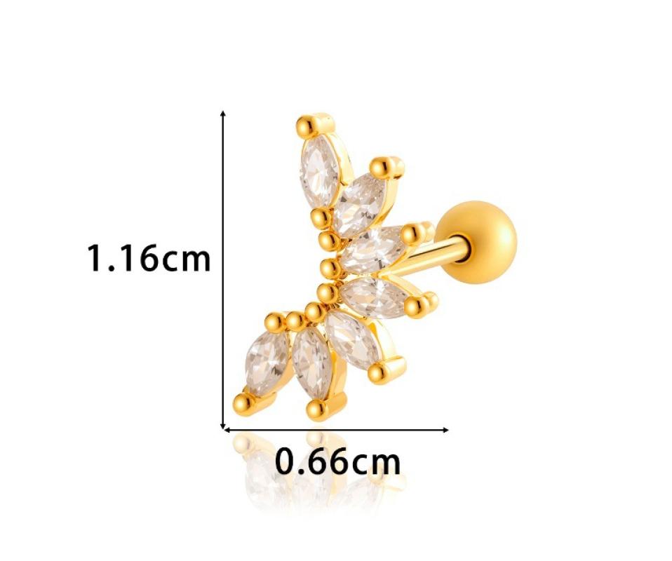 Bijoux de piercing d'oreille en acier inoxydable, Acier inoxydable 304, avec laiton, Placage de couleur d'or, bijoux de mode & pavé de micro zircon, plus de couleurs à choisir, Vendu par PC