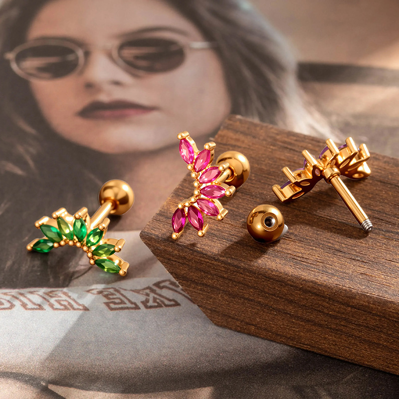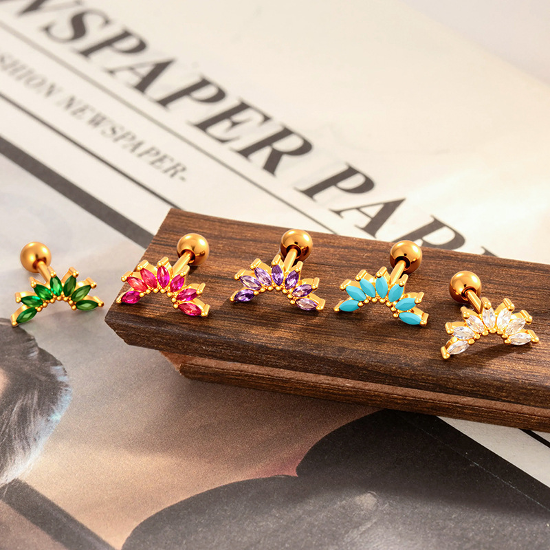 Bijoux de piercing d'oreille en acier inoxydable, Placage, avec zircone cubique, couleurs mélangées Vendu par PC